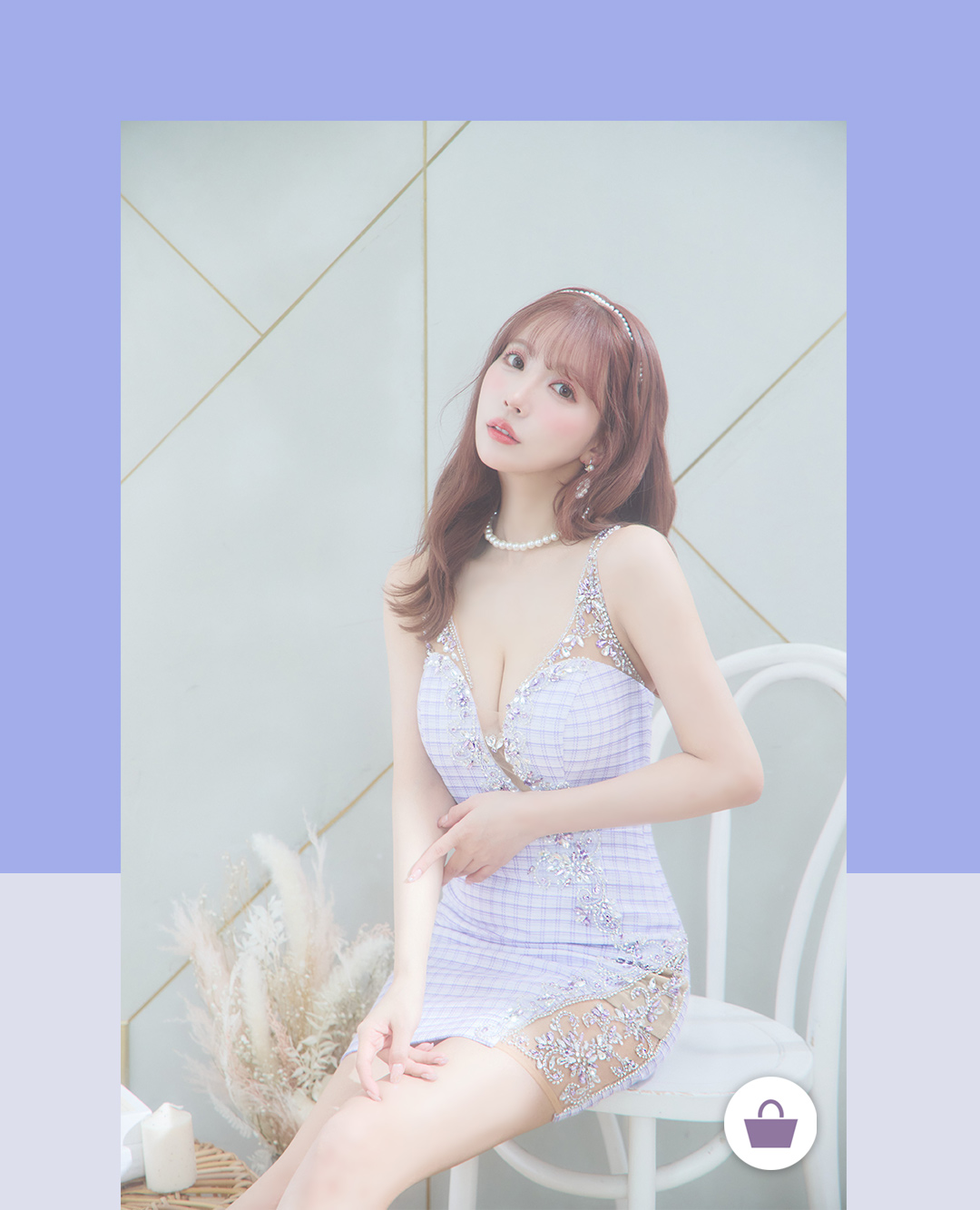 チェックツイードがカジュアル可愛い1着。豪華なビジューで暗い店内も煌びやかに発色します。