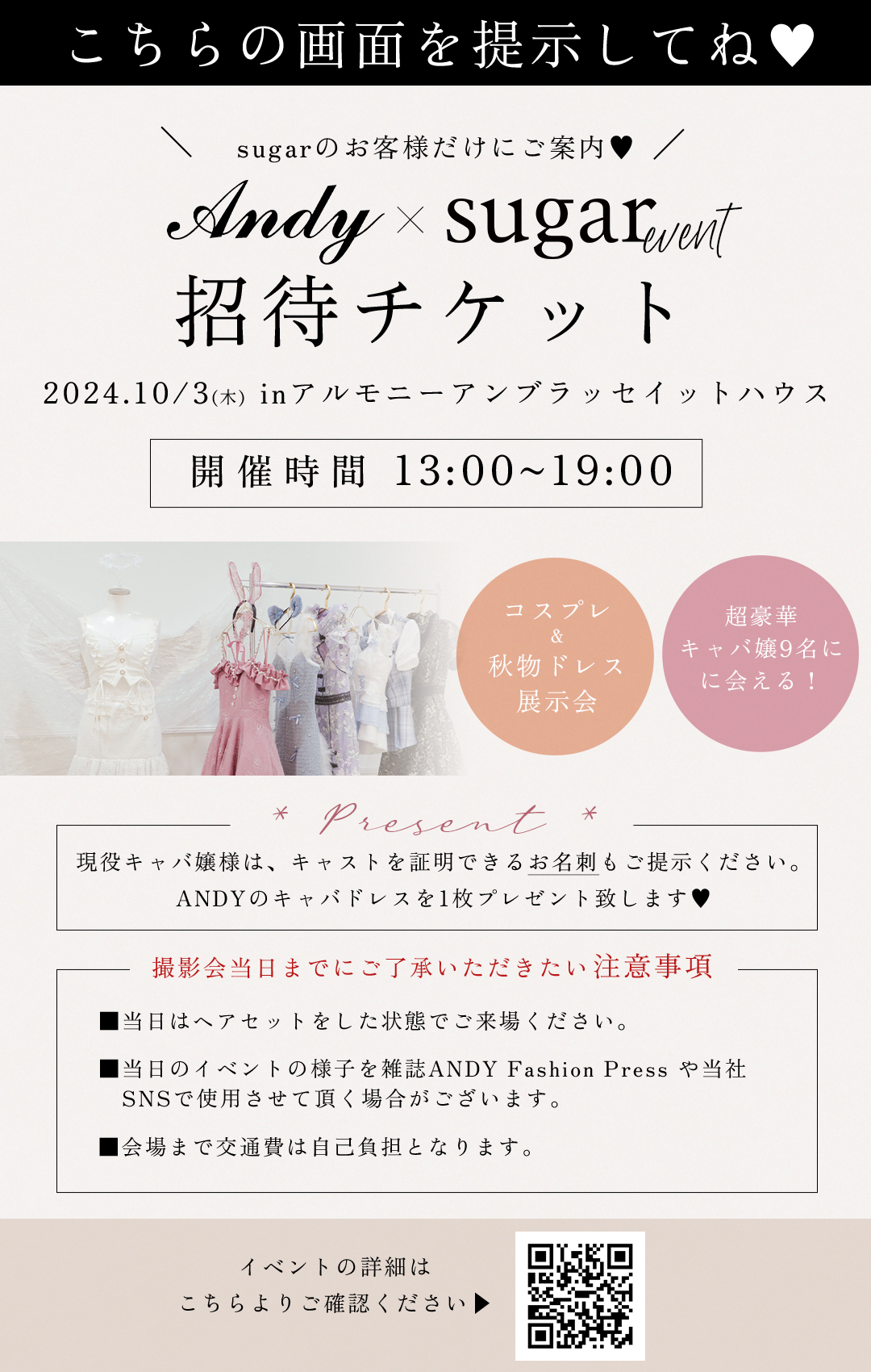 【 展示会ご招待♡ 】ANDY×sugar コスプレ&ドレス展示会 in大阪