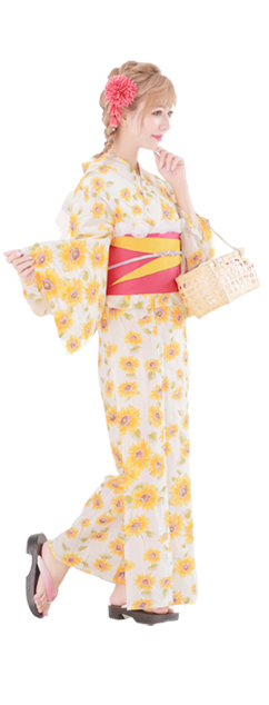 ![]() 白地×黄色花模様浴衣 3点SET ¥13,800+tax |