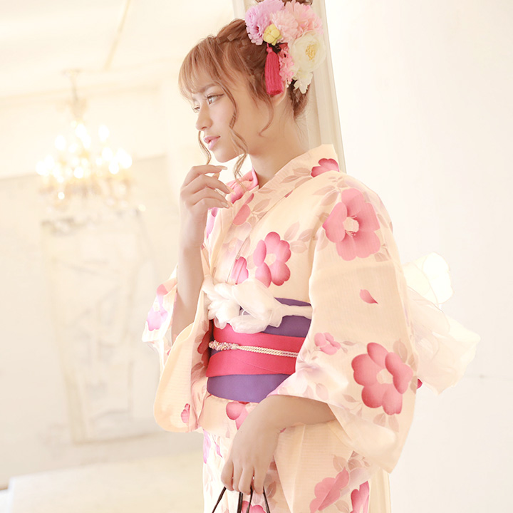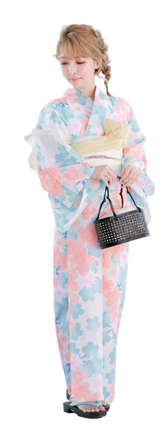 ![]() クリーム地×花浴衣 3点SET ¥12,000+tax |