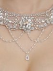 繊細なビジューが首元からサイドへと流れるように輝き、リュクスな印象を与えるドレス。