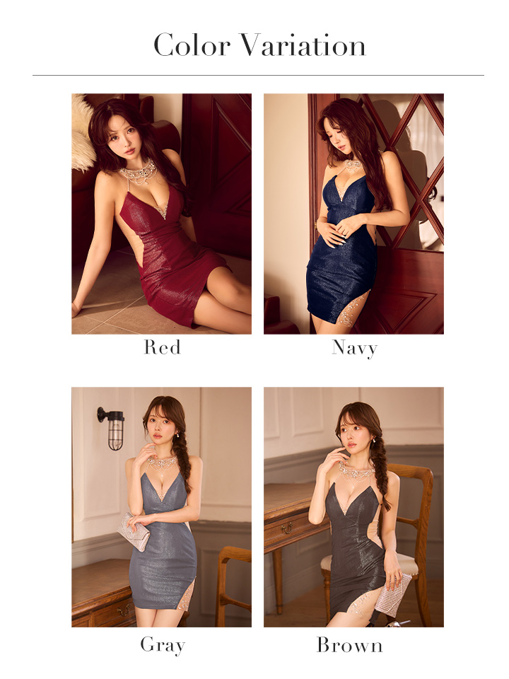 - > XSサイズあり【ANGEL R/エンジェルアール】ホルターネック/ パールチェーン/ Vカット/ メッシュ/ ビジュー/ ラメ/ タイト/ ミニドレス/ キャバドレス[OF2]