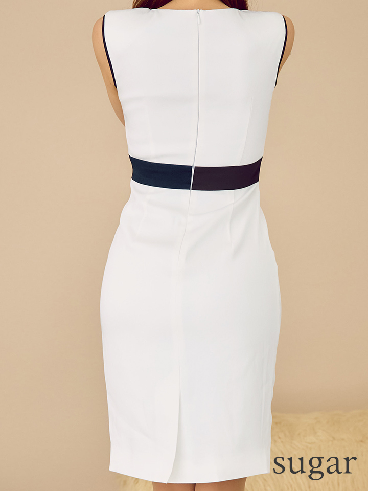 - > XS-Lサイズあり【GINZA COUTURE/銀座クチュール】シンプル/ バイカラー/ パイピング/ ノースリーブ/ 切替/ スクエアネック/ タイト/ 膝丈/ ミディアムドレス/ キャバドレス[OF2