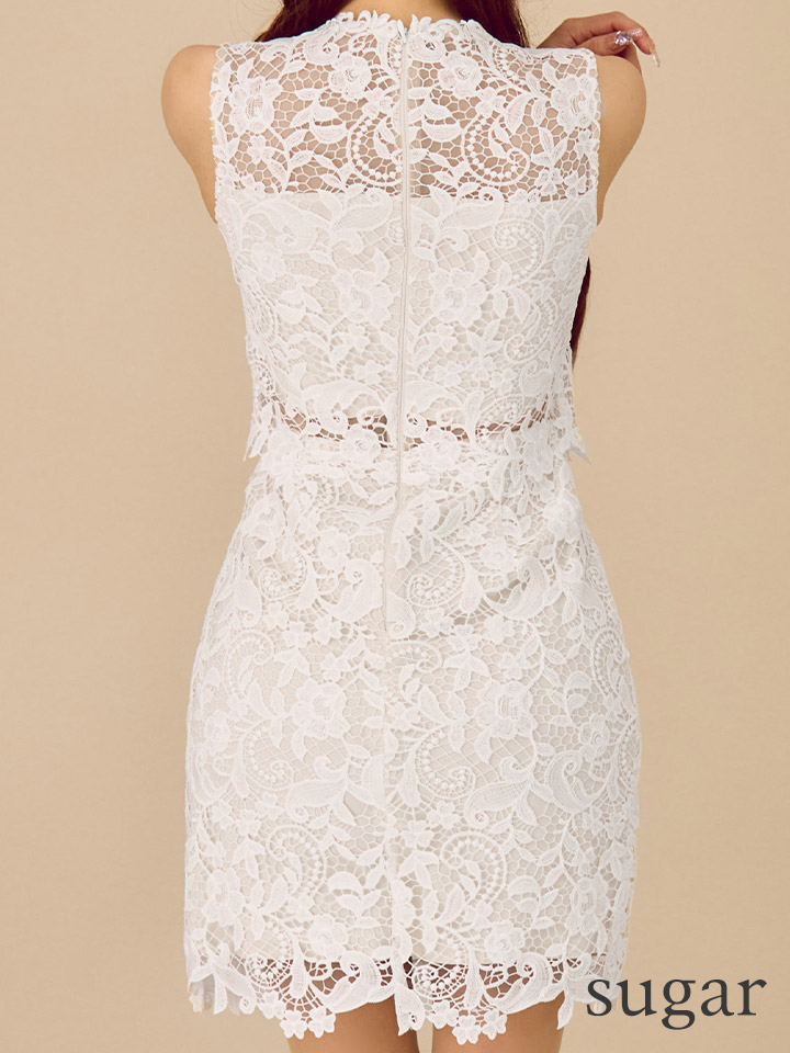 花柄刺繍の総レースがフェミニンなタイトミニドレス♡