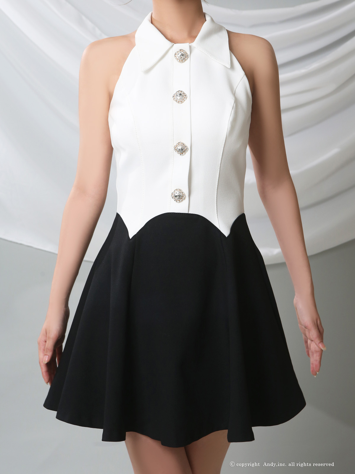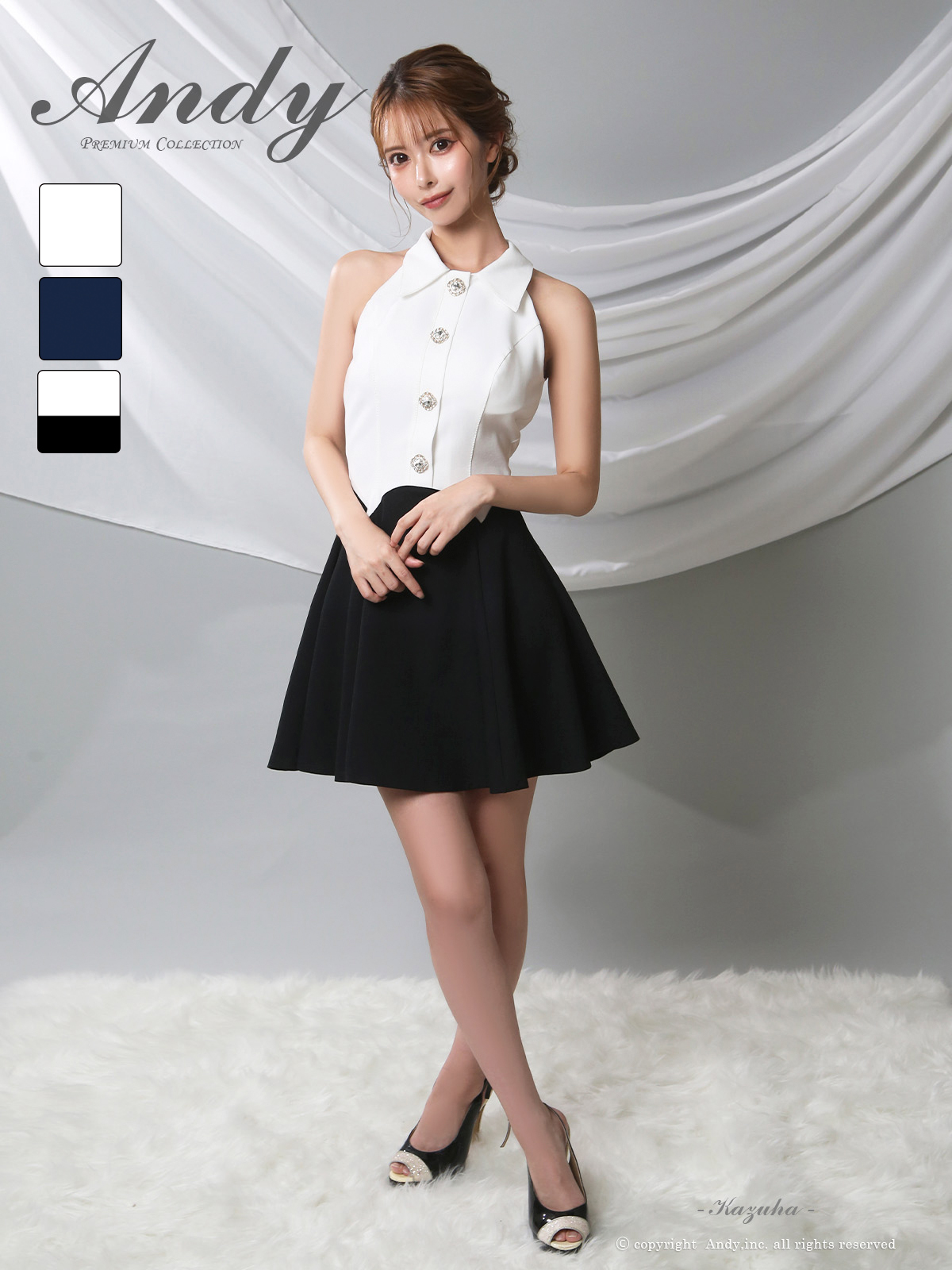 - > XSサイズあり【ANDY/アンディ】襟付き/ ノースリーブ/ 袖なし/ フレア/ ミニドレス/ キャバドレス[OF05]