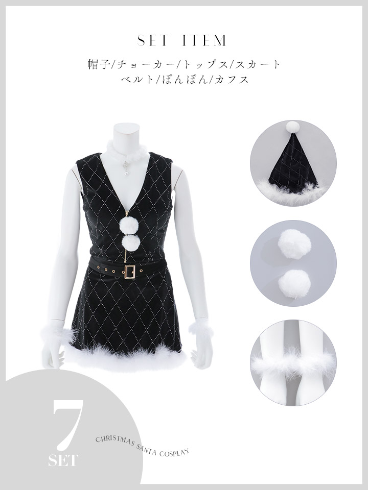 【ノベルティ対象】【即日発送】【サンタ】ダイヤ柄ビジューベルト付きサンタコスプレ【コスプレ7点セット】【XS-Lサイズ/2カラー】[OF03] [SS-167-YN-dzw-B-25MY]