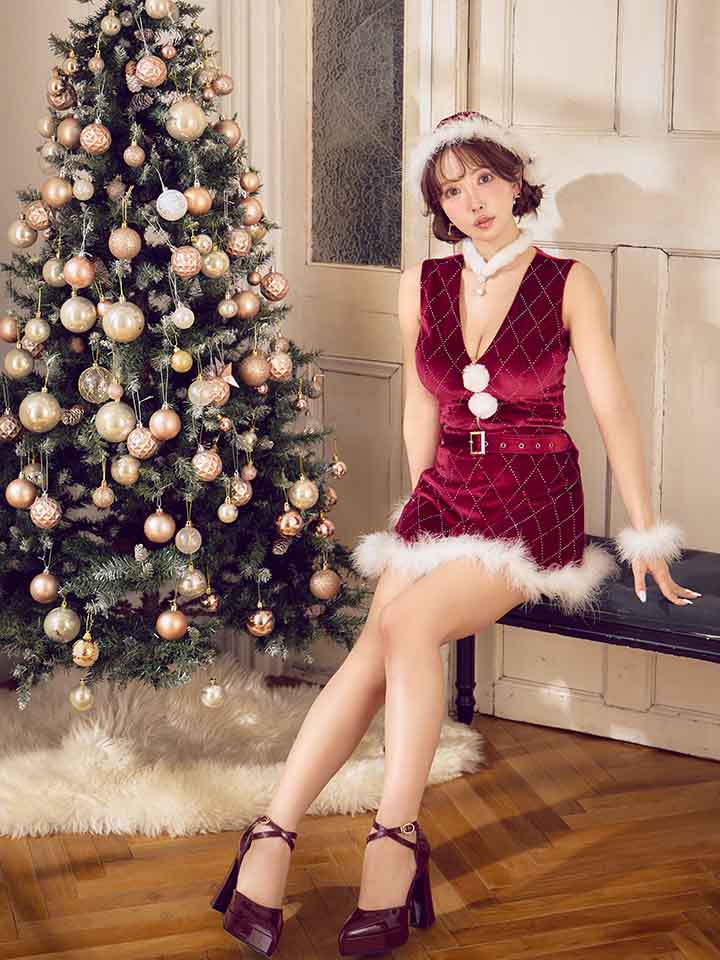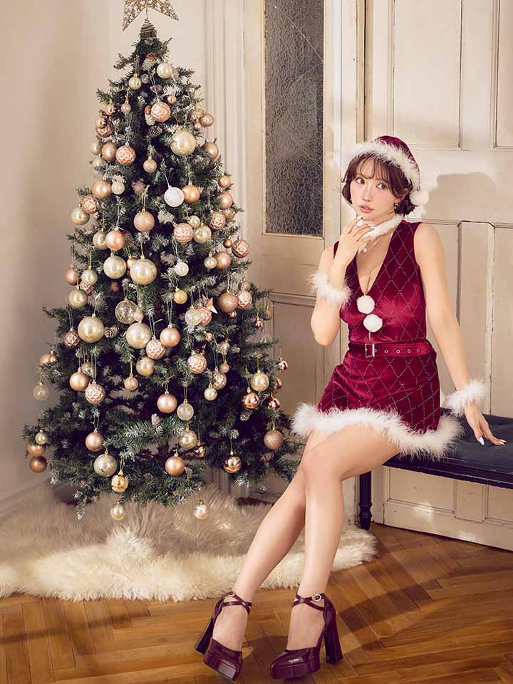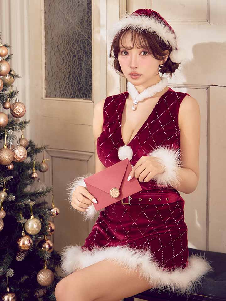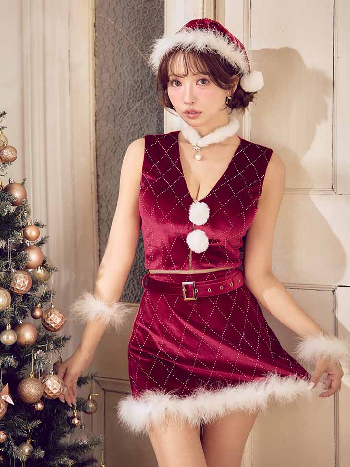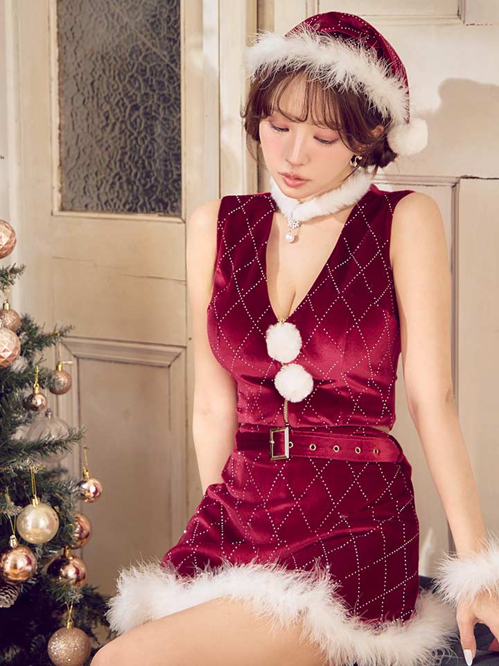 - > 【ノベルティ対象】【即日発送】【サンタ】ダイヤ柄ビジューベルト付きサンタコスプレ【コスプレ7点セット】【XS-Lサイズ/2カラー】[OF03]