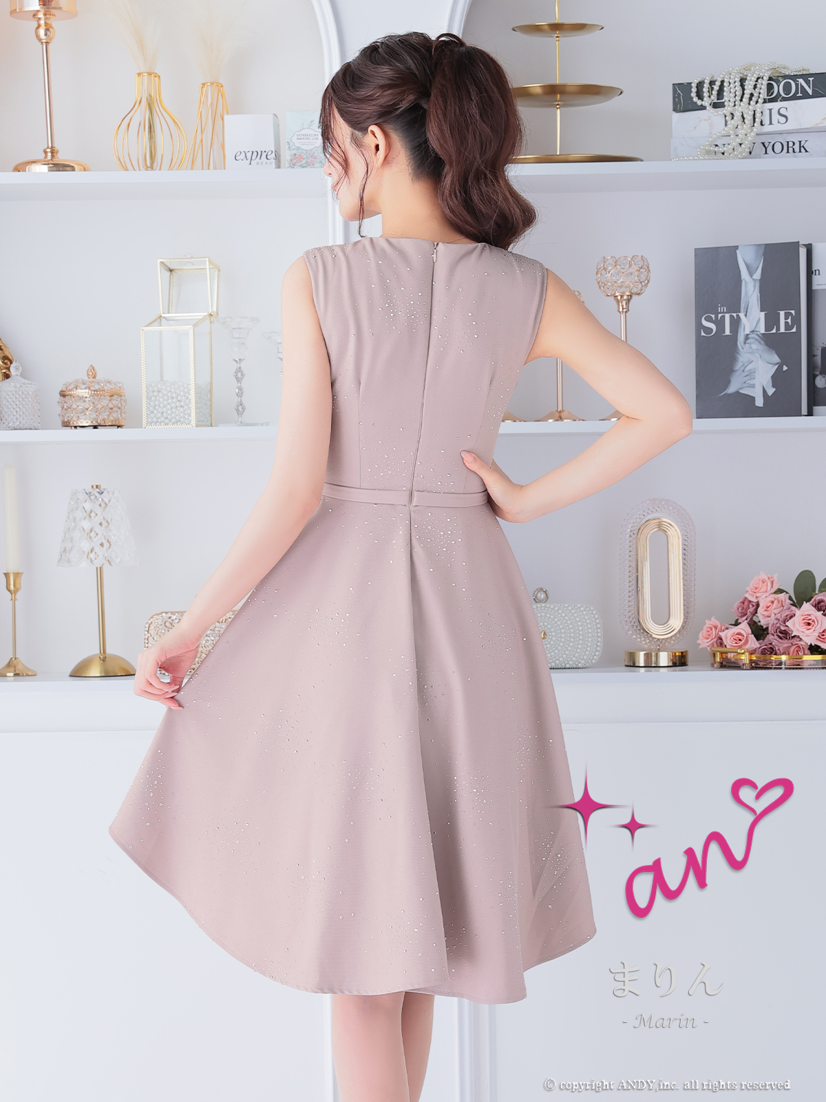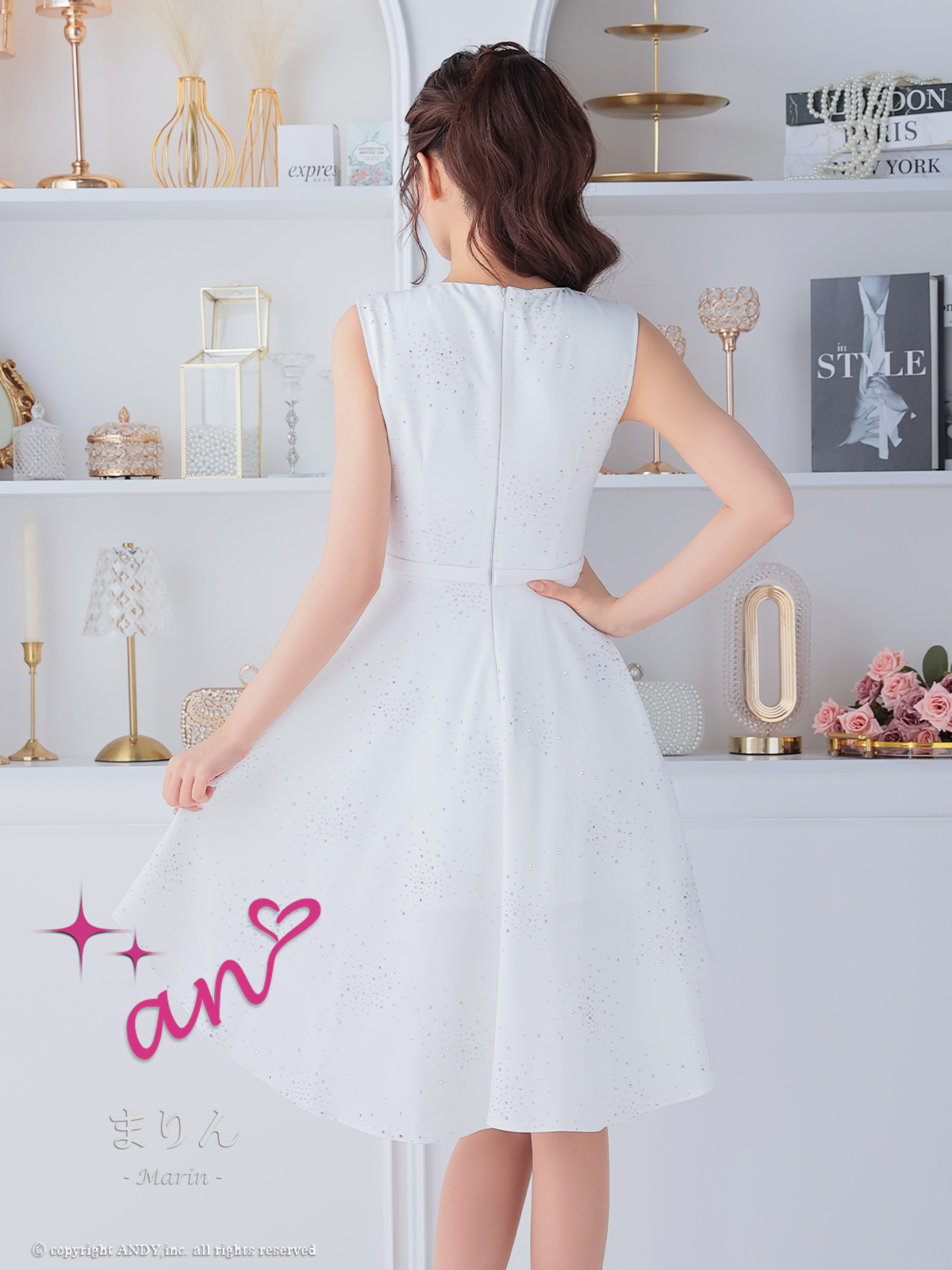 【an/アン】全身にビジューが煌めくエレガントなフレアミニドレス♡