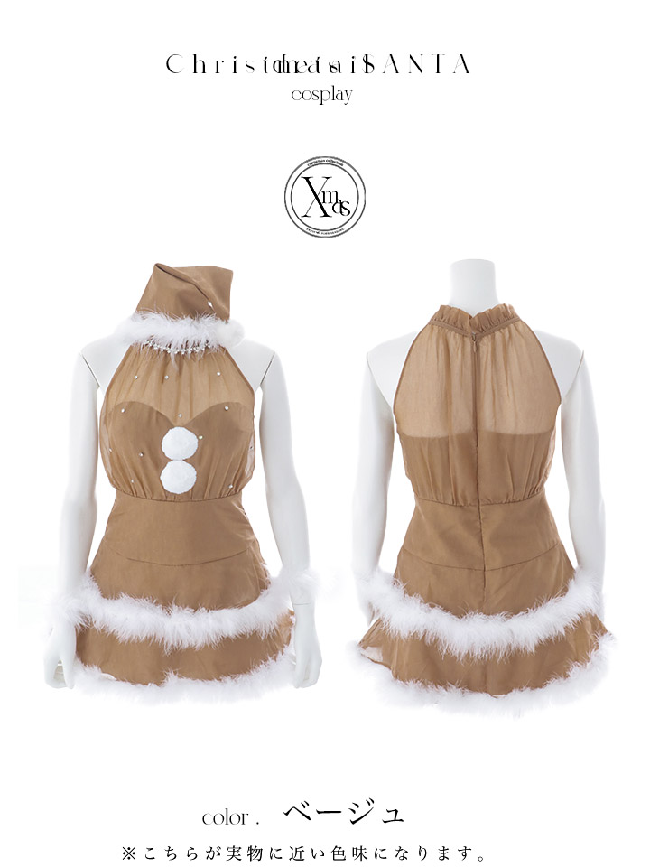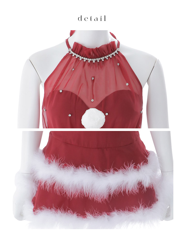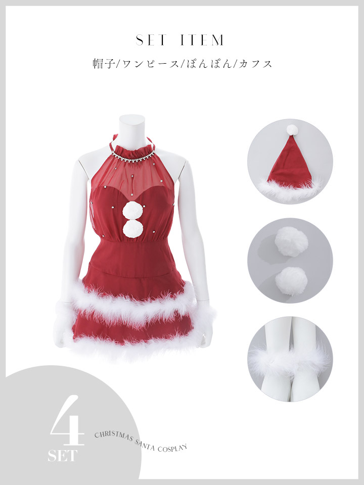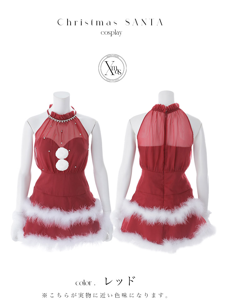 - > 【即日発送】【ノベルティ対象】【送料無料!】【サンタ】シフォンホルターネックティアードサンタコスプレ【コスプレ4点セット】【XS-Lサイズ/2カラー】[OF01/OF04]