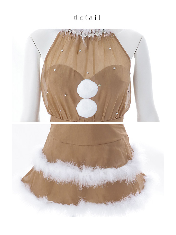 透け感×ふわもこファーでフェミニンに仕上げたサンタコスプレ。