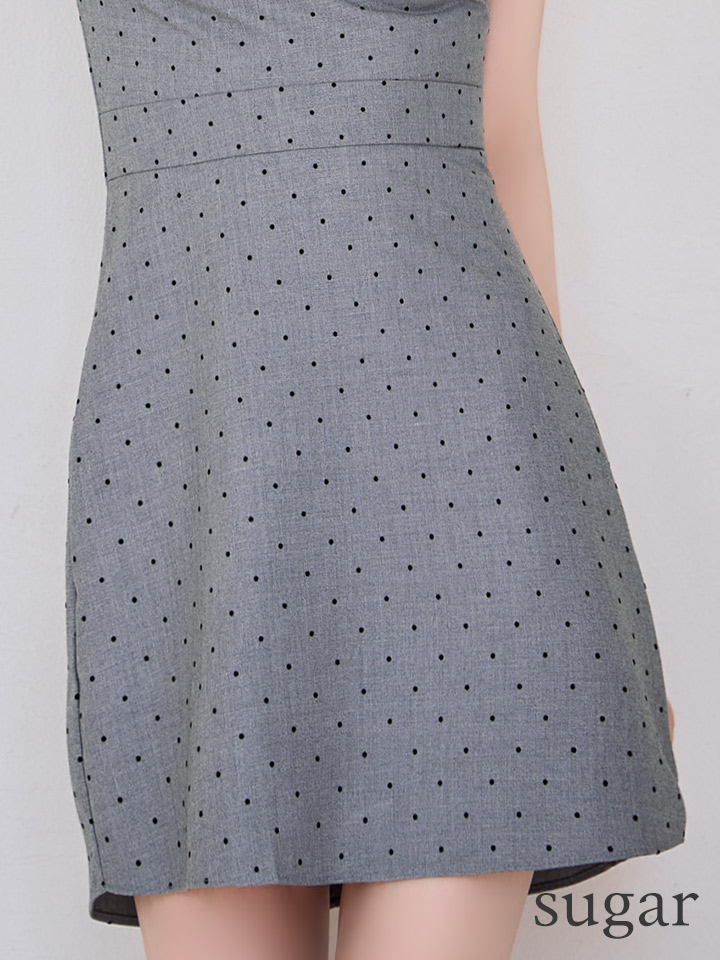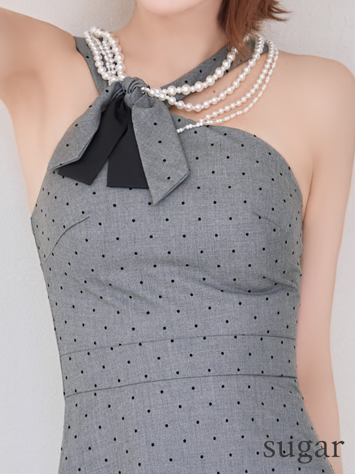 XSサイズあり【ANGEL R/エンジェルアール】デコルテリボン/ アシンメトリーデザイン/ パールチェーン/ ドット/ フレア/ ミニドレス/ キャバドレス[OF2]
