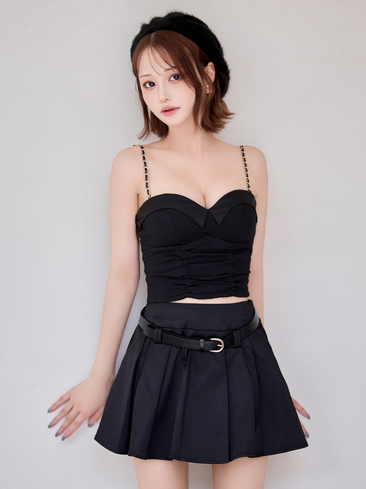プリーツミニ×ベルトの組み合わせがトレンド感満載です♡