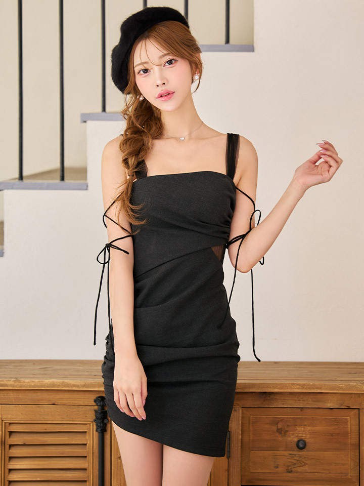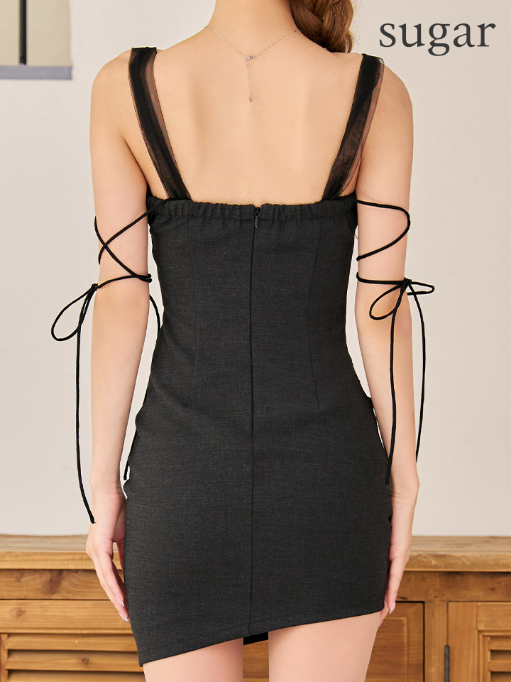 XSサイズあり【ANGEL R/エンジェルアール】サイドカット/ スリーブリボン/ タック/ メッシュ/ タイト/ ミニドレス/ キャバドレス[OF2]