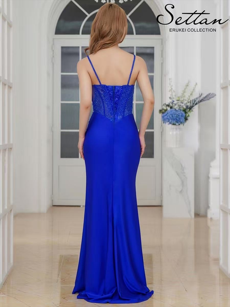 XS-Lサイズあり【SETTAN/セッタン】ラインストーン/ ウエストシアー/ ストレッチ/ キャミソール/ スリット/ ロングドレス / キャバドレス long[OF2] [LKS37211-BL-2510]