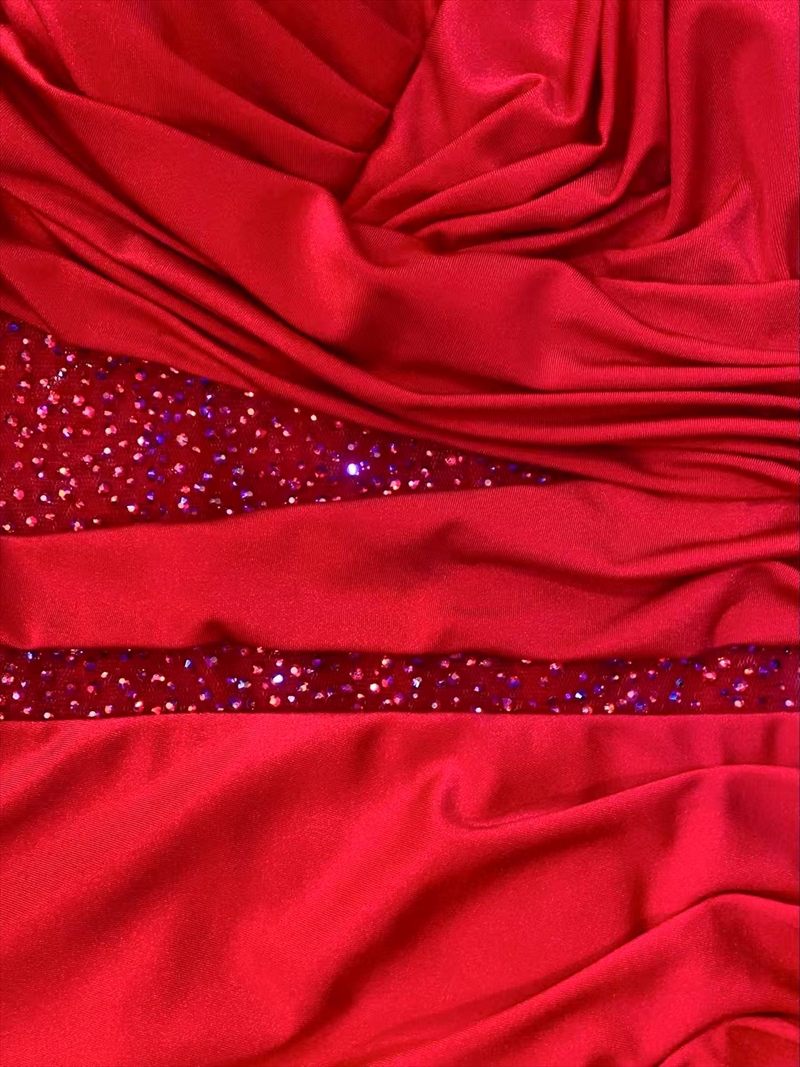 ウエストから背中にかけて贅沢に施されたラインストーンが煌めき、ラグジュアリーな雰囲気を演出◎