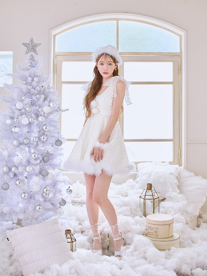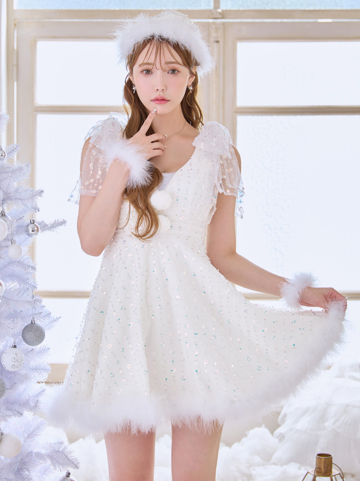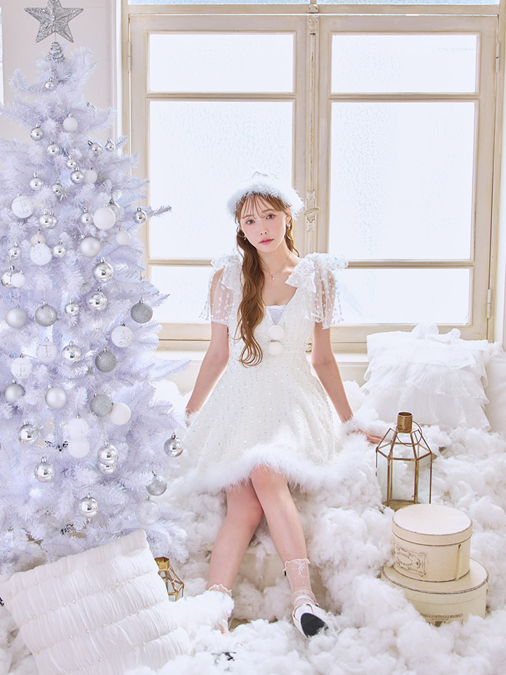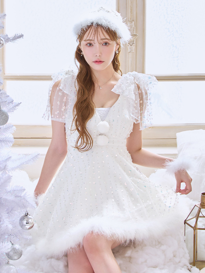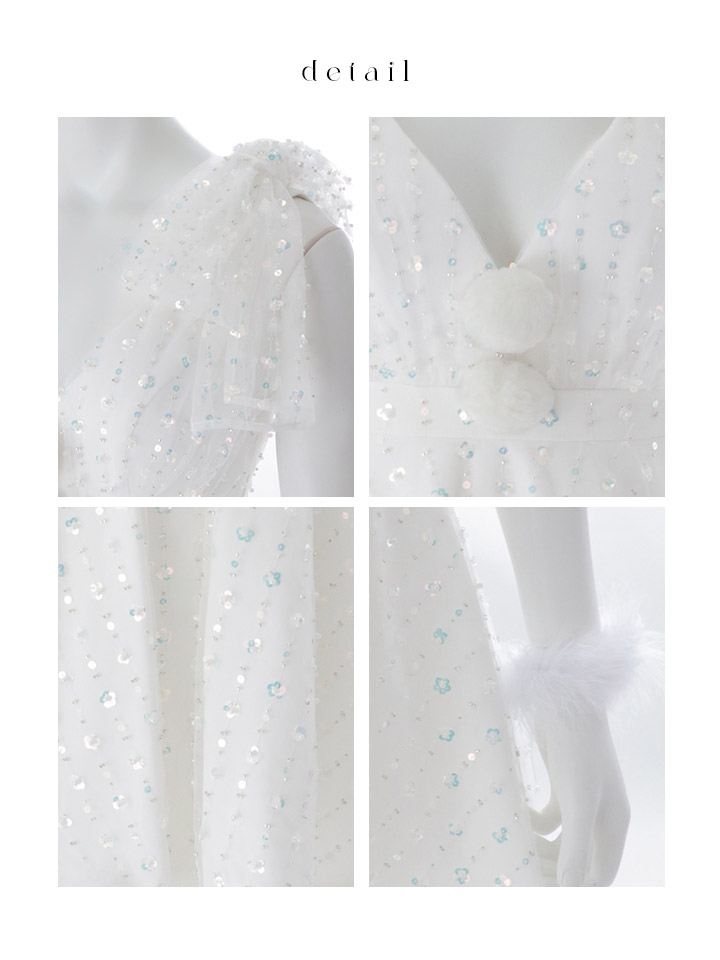 雪のようにきらめくスパンコールに、上品なパールを散りばめたデザイン。