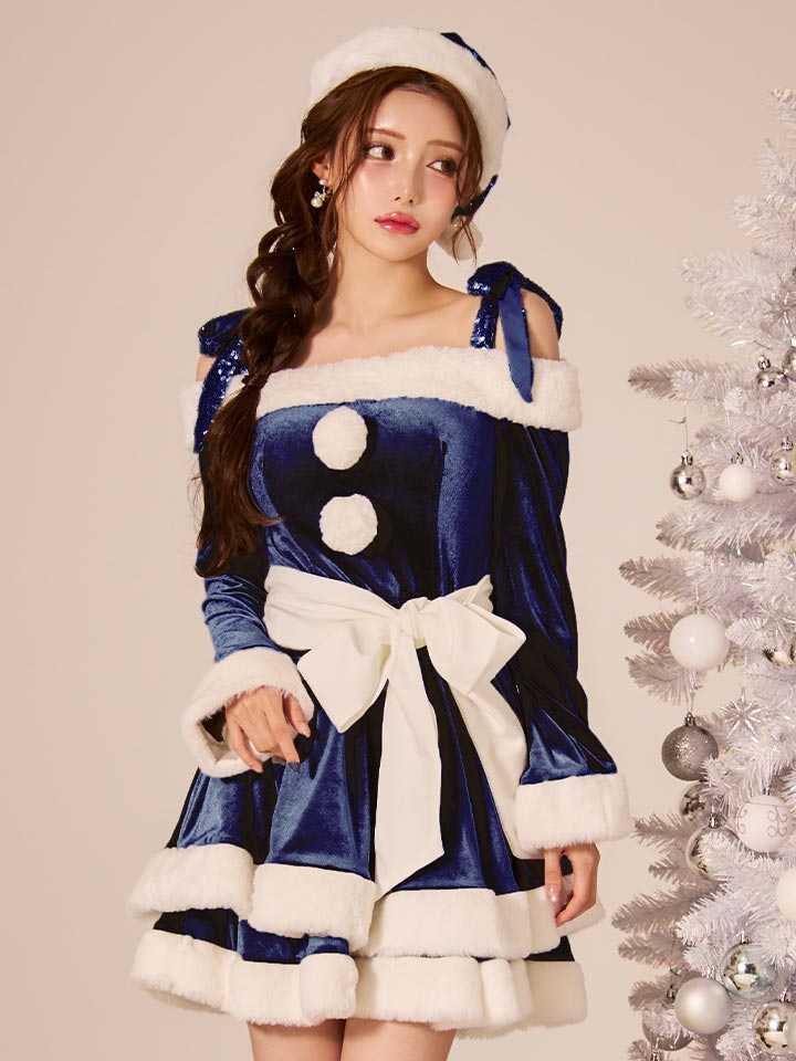 【一部予約 / 10月下旬発送予定】【送料無料!】【サンタ】グリッターリボン2段フレアサンタコスプレ【コスプレ4点セット】【XS-XLサイズ/8カラー】[OF03] [SS-7150-SB-BL-25RK]