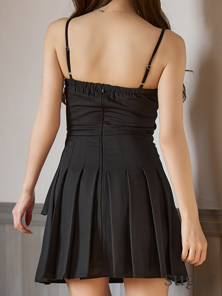 XSサイズあり【IRMA/イルマ】キャミ/ バストジップ/ アシンメトリー/ ティアード/ 2段プリーツ/ フレア/ ミニドレス/ キャバドレス[OF2A] [55098-IR-B-S251020]