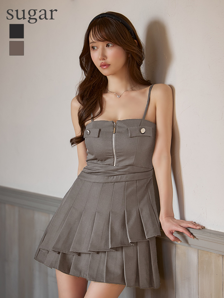 - > XSサイズあり【IRMA/イルマ】キャミ/ バストジップ/ アシンメトリー/ ティアード/ 2段プリーツ/ フレア/ ミニドレス/ キャバドレス[OF2A]
