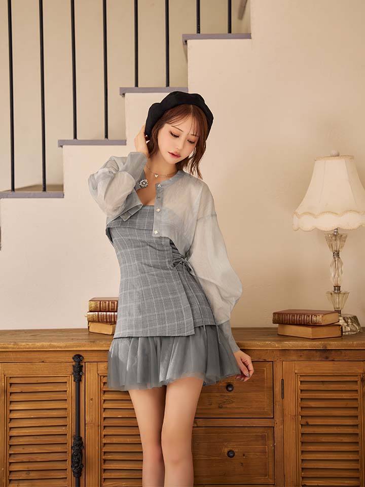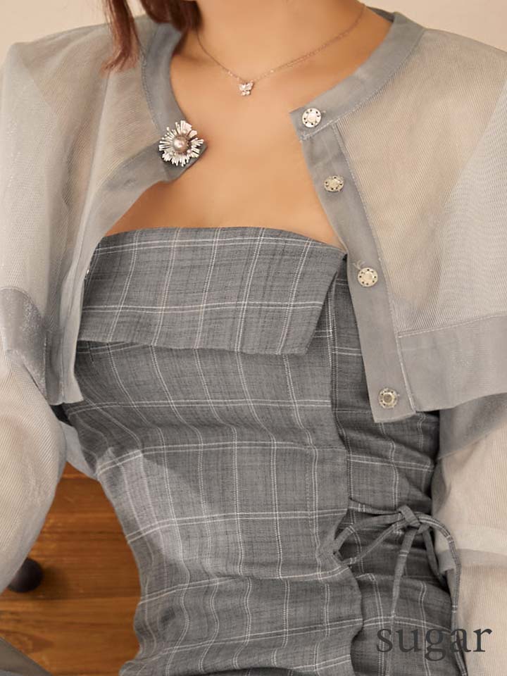 シアー素材で軽やかに仕上げた、トレンド感たっぷりのショートボレロ。