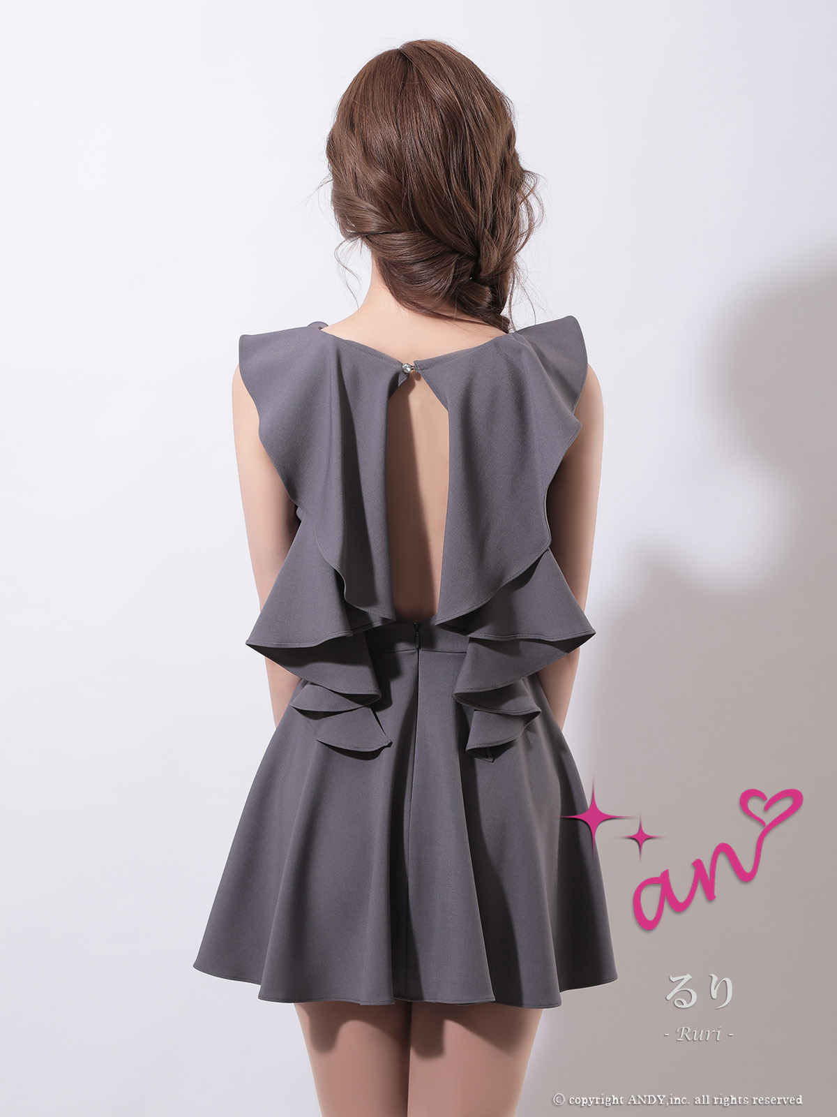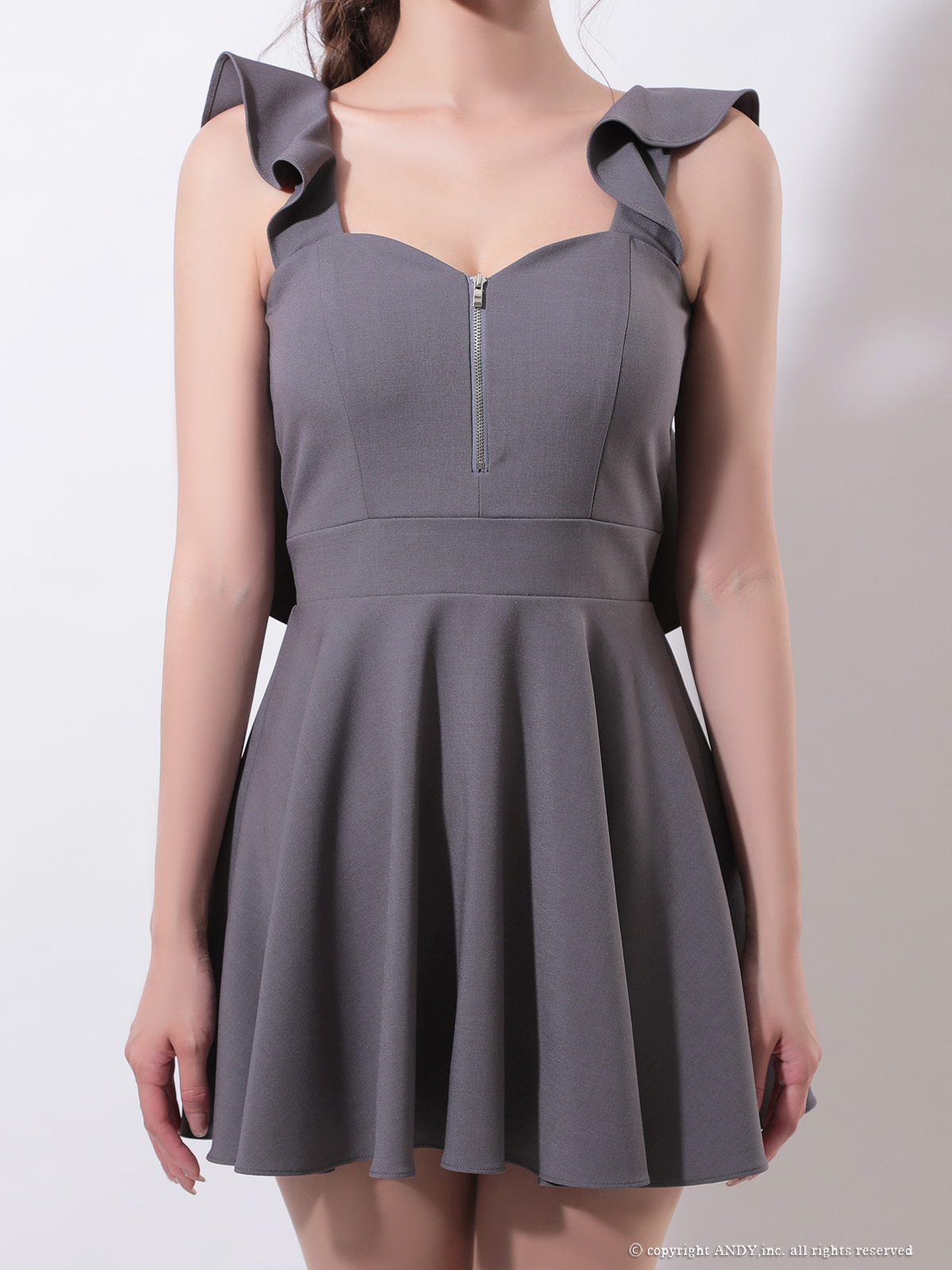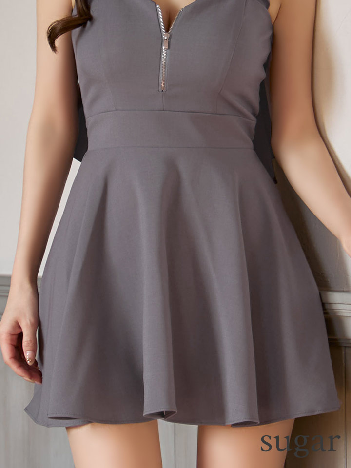 XSサイズあり【an /アン】バストジップ/ フリル/ バックオープン/ プリーツ/ フレア/ ノースリーブ/ ミニドレス/ キャバドレス[OF05] [AOC3963-GY-S251020]