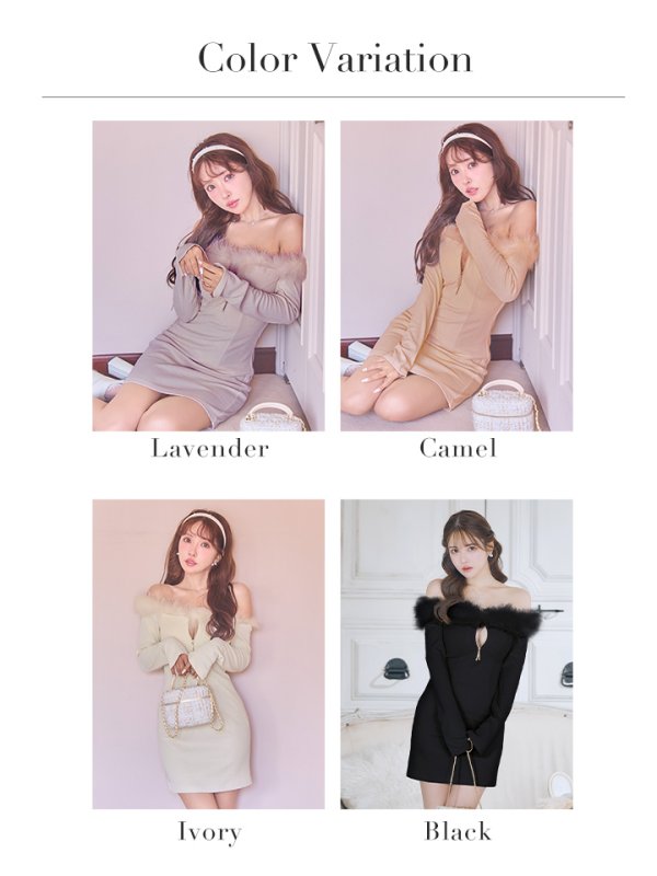 - > XSサイズあり【Glossy/グロッシー】2way/ オフショル/ ファー/ バストジップ/ リブニット/ タイト/ ミニドレス/ キャバドレス[OF08]