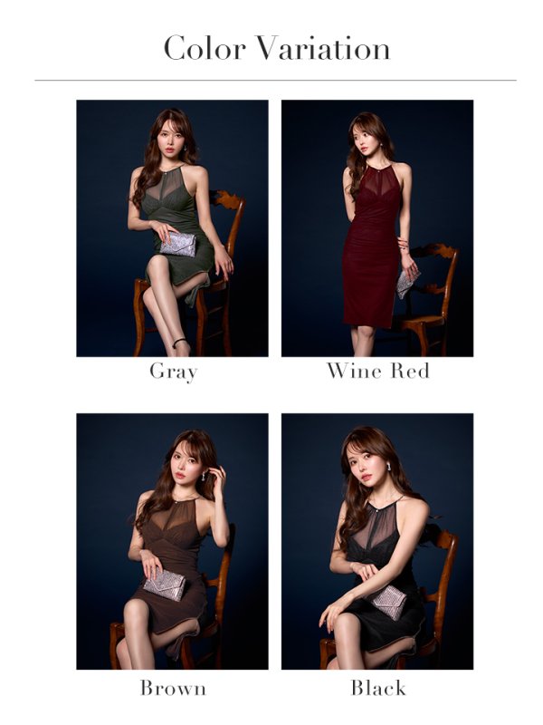 デコルテを美しく見せる透け感デザインが洗練された雰囲気に。