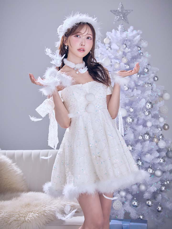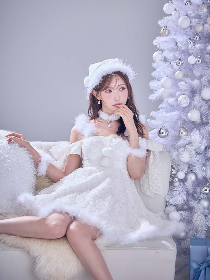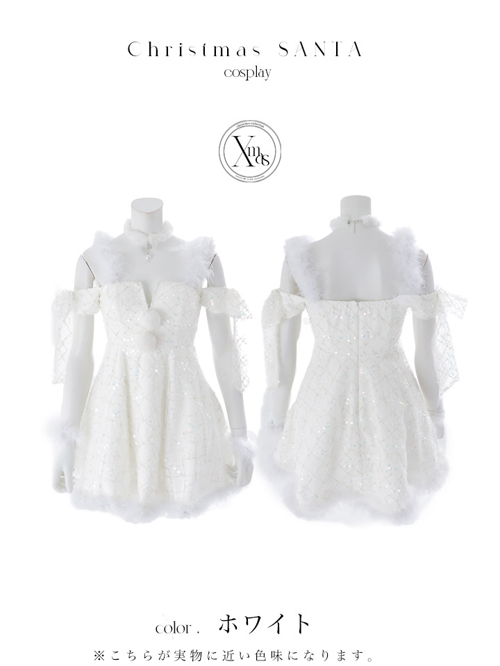 - > 【即日発送】【サンタ】ラメチュールオフショルリボンサンタコスプレ【コスプレ5点セット】【XS-Lサイズ/1カラー】[HC02]