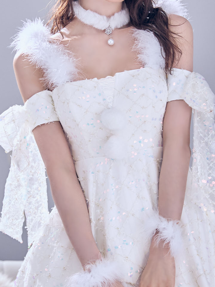 【即日発送】【サンタ】ラメチュールオフショルリボンサンタコスプレ【コスプレ5点セット】【XS-Lサイズ/1カラー】[HC02] [SS-211-SB-dzw-W-25YI]