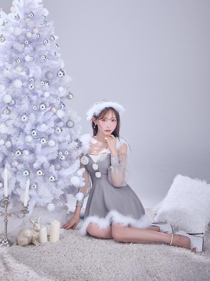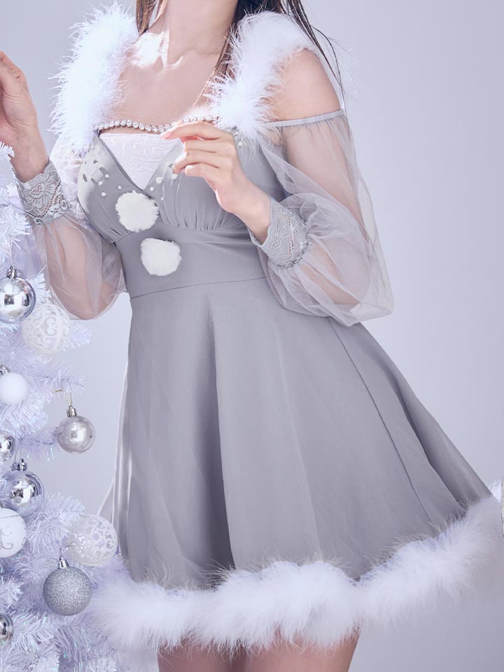 - > 【ノベルティ対象】【即日発送】【サンタコス 3点セット】【XS-XLサイズ/2カラー】シアーチュールオフショルダーサンタコスプレ[YMT]
