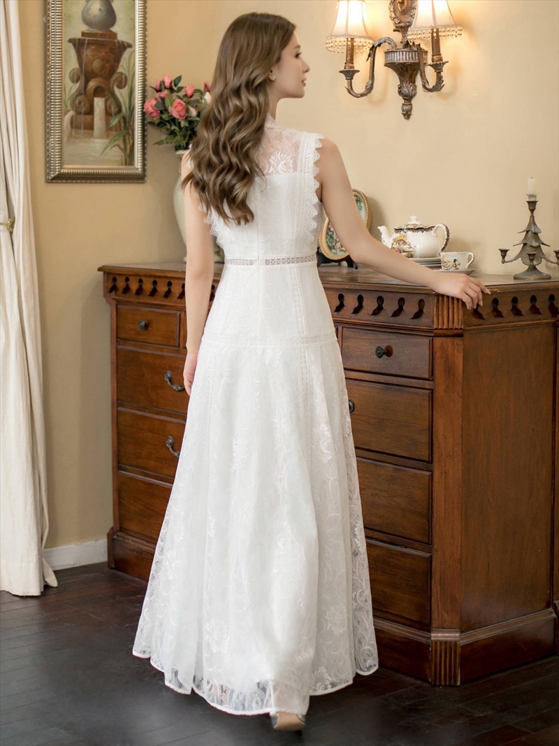 XS-Lサイズあり【ERUKEI エルケイ】総レース/ ノースリーブ/ Aライン/ ロングドレス/ キャバドレスlong[OF2] [LKE2622-W-230318]