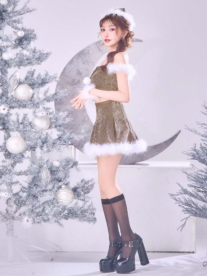 【即日発送】【サンタ】ファーショルダーシースルーフレアサンタコスプレ【コスプレ5点セット】【XS-XLサイズ/2カラー】[HC03] [SS-186-YN-dzw-GY-25AS]