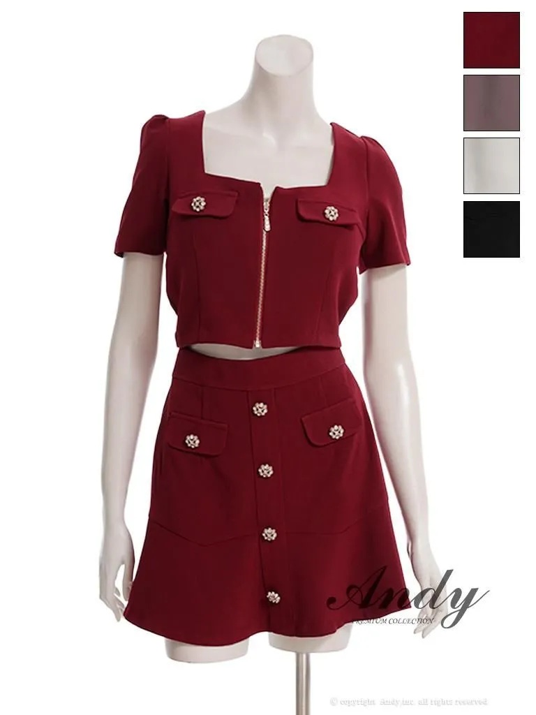 XSサイズあり【ANDY/アンディ】ストレッチ/ スクエアネック/ 半袖/ 袖あり/ セットアップ/ ミニドレス/ キャバドレス[OF05] [OK3014-BR-2510]