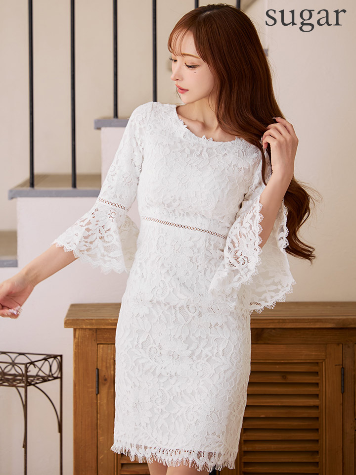 総レースとタイトシルエットが上品な印象のミディアムワンピース♡