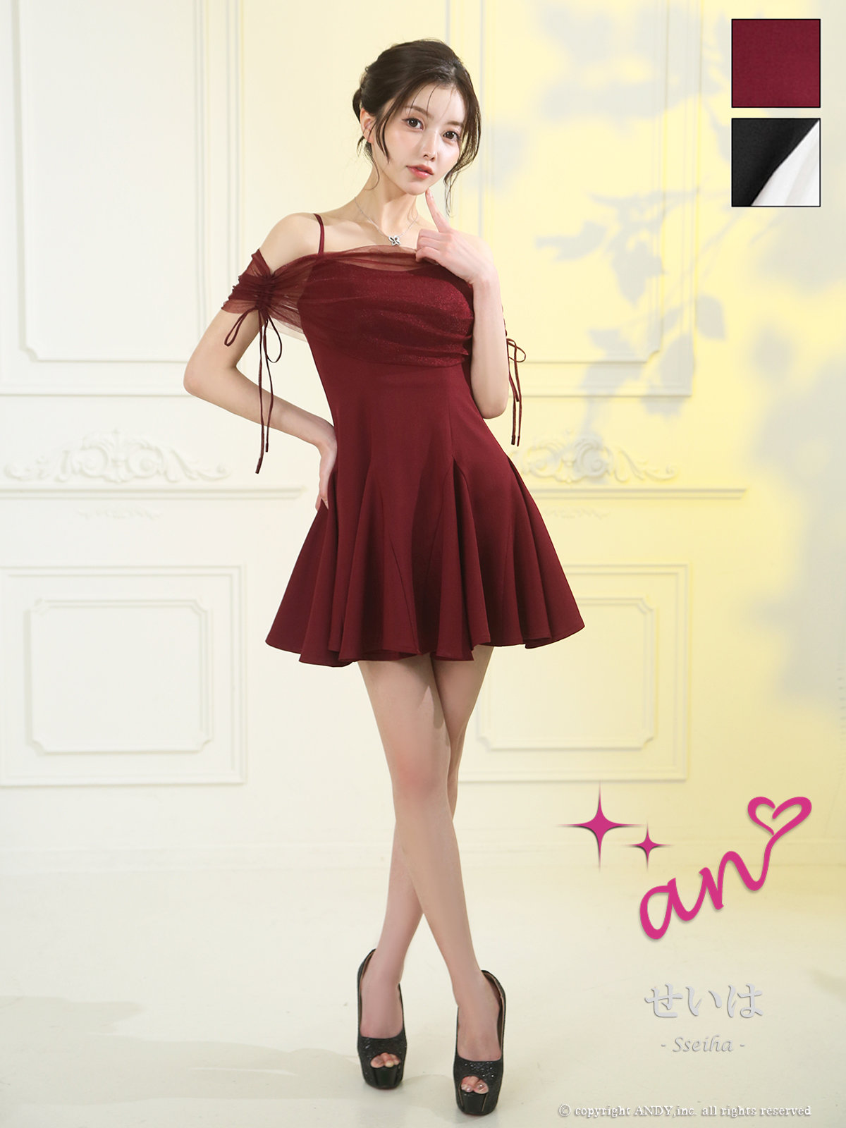 XSサイズあり【an/アン】シアー/ オフショル/ 2way/ キャミ/ フレア/ ミニドレス/ キャバドレス[OF05] [AOC4006-WR-2510]
