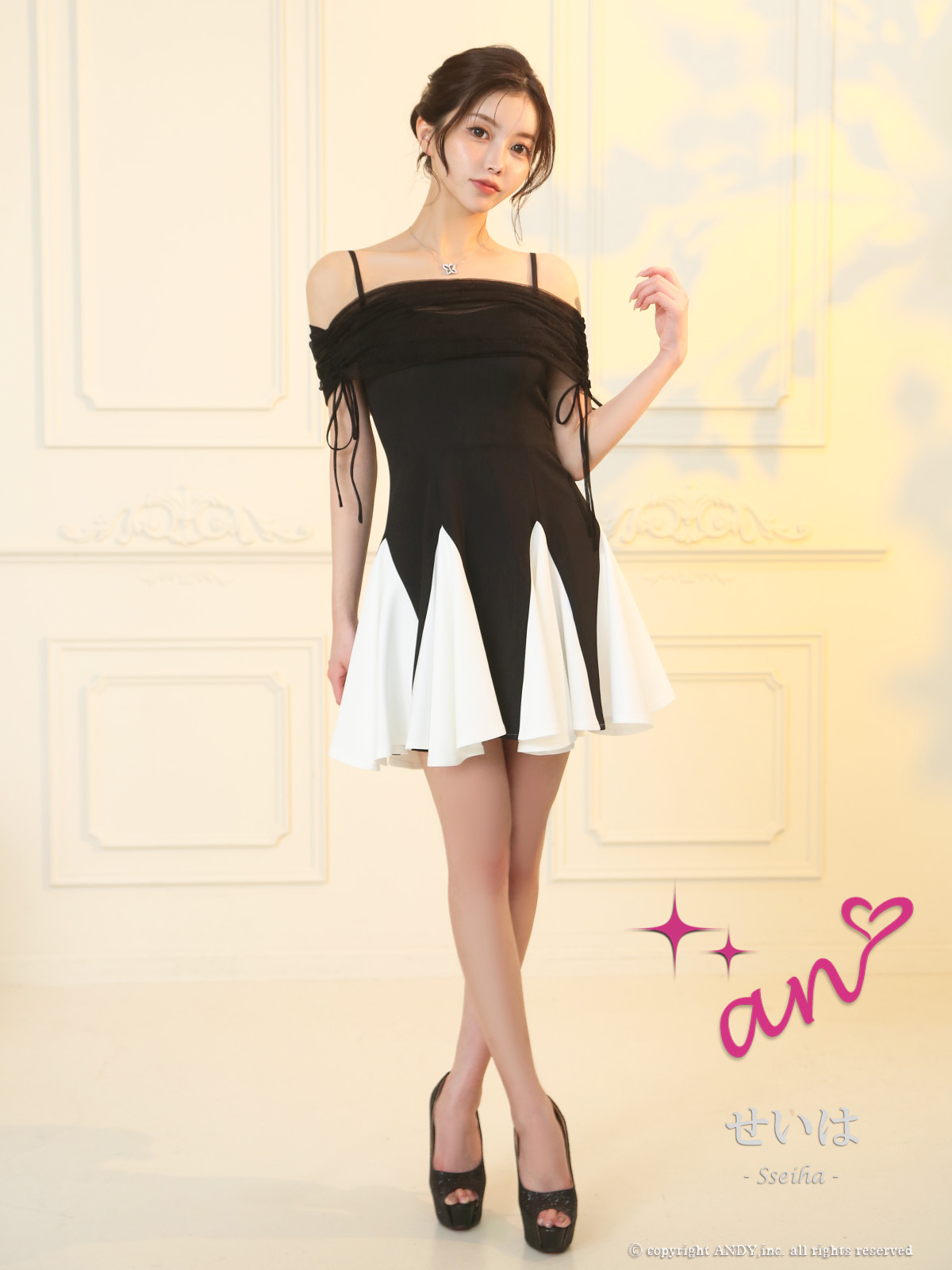 XSサイズあり【an/アン】シアー/ オフショル/ 2way/ キャミ/ フレア/ ミニドレス/ キャバドレス[OF05]