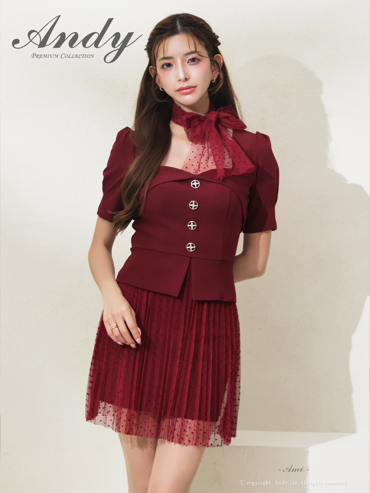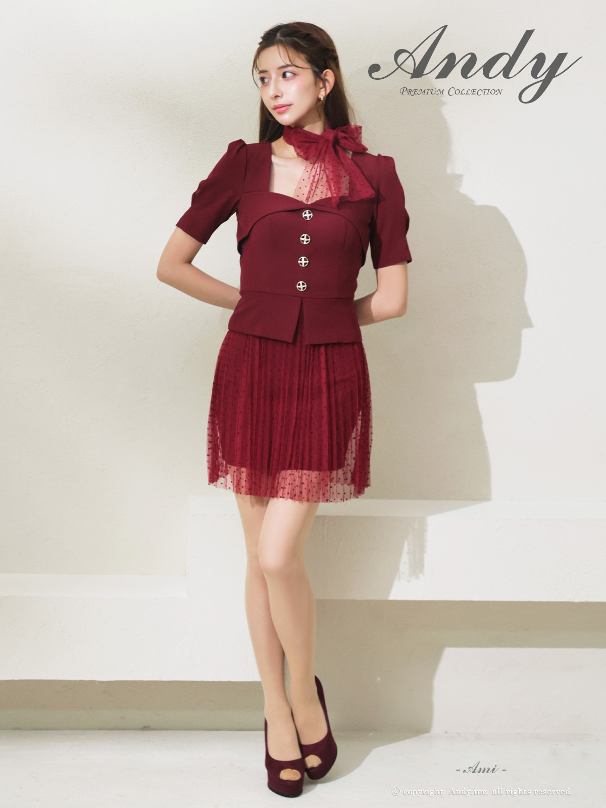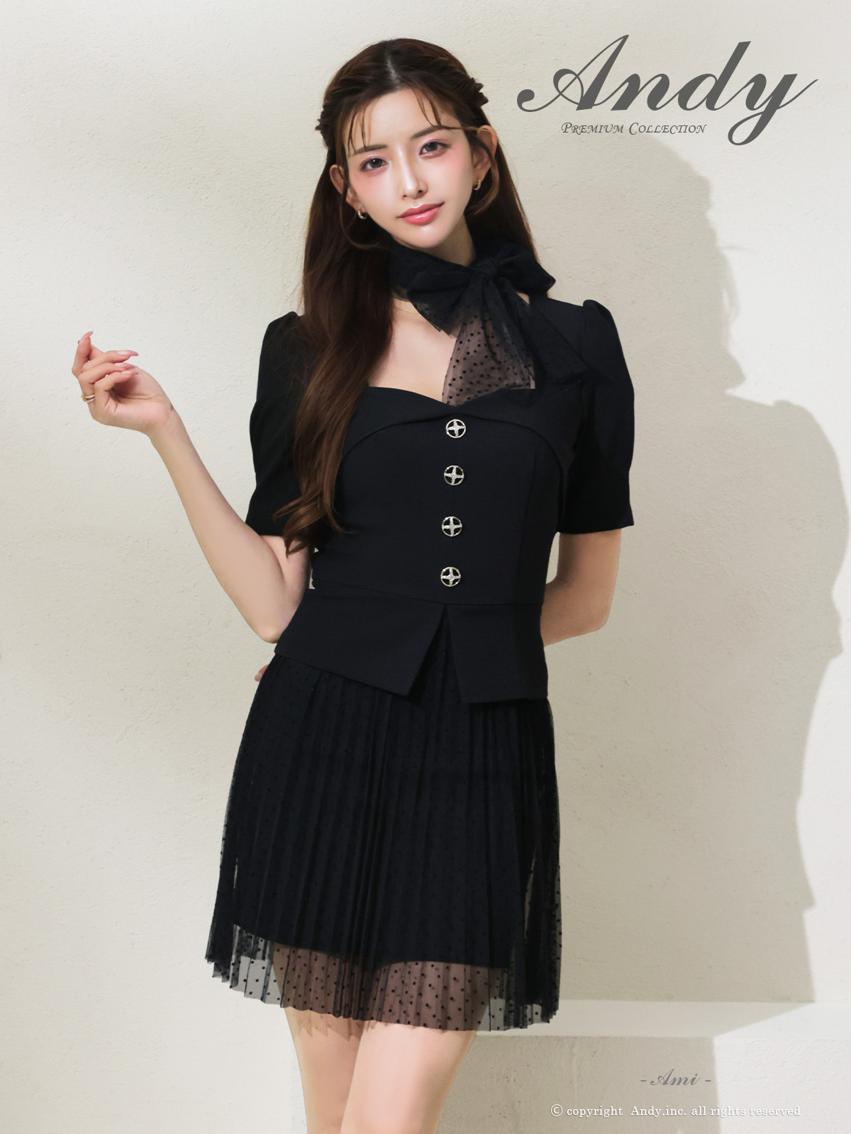 - > XSサイズあり【ANDY/アンディ】ビジューボタン/ スクエアネック/ チュールスカーフ/ ハーフスリーブ/ フレア/ セットアップ/ ミニドレス/ キャバドレス[OF05]