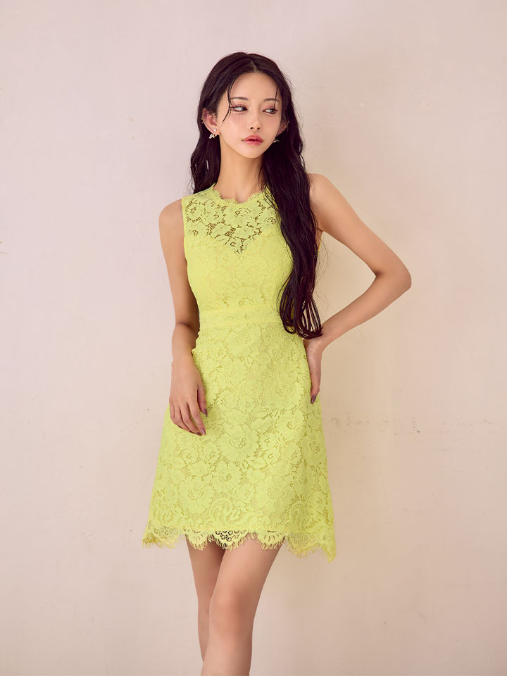 XS-Lサイズあり【ERUKEI エルケイ】総レース/ ノースリーブ/ 花柄/ スカラップ/ Aライン/ ワンピース/ ミニドレス/ キャバドレス[OF2] [LKE25156-Y-S2510]