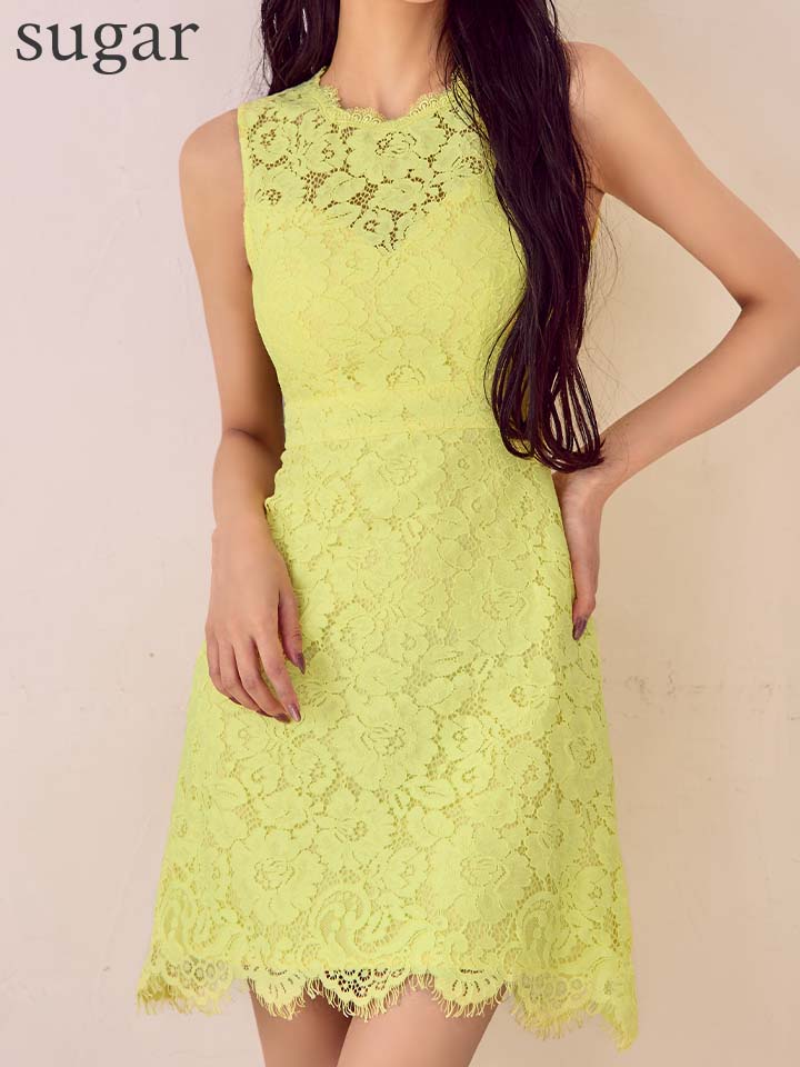 - > XS-Lサイズあり【ERUKEI エルケイ】総レース/ ノースリーブ/ 花柄/ スカラップ/ Aライン/ ワンピース/ ミニドレス/ キャバドレス[OF2]