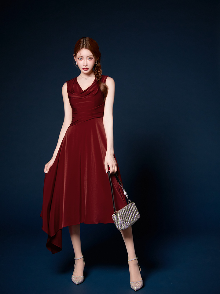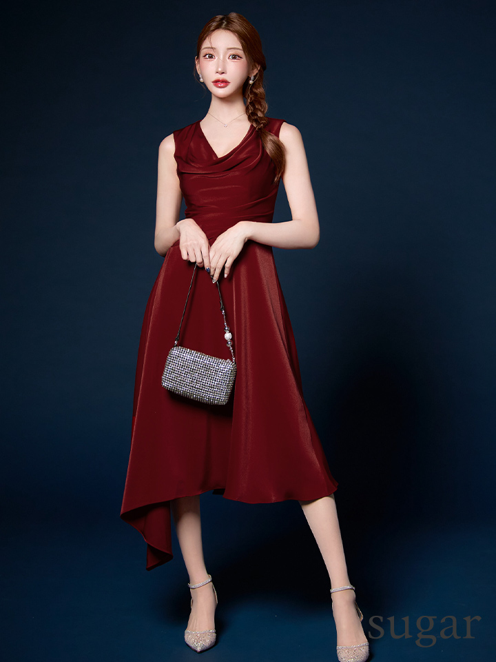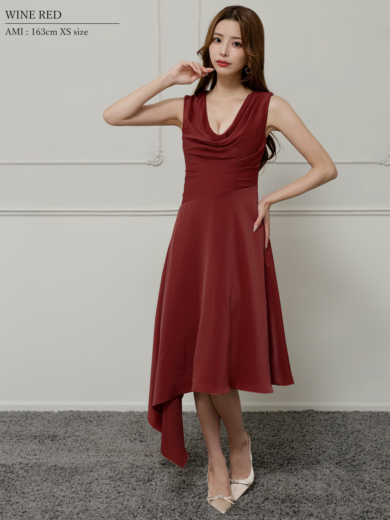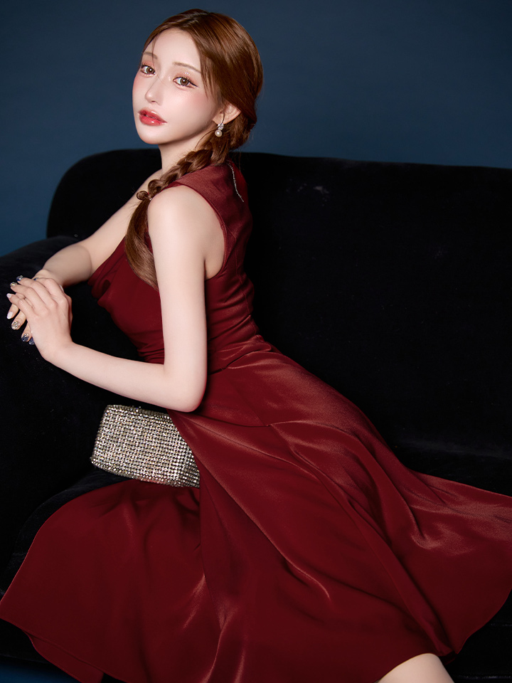 【予約商品/10月中旬-10月下旬発送予定】XSサイズあり【Veautt/ヴュート】【OF05】バストドレープ/ アシンメトリーデザイン/ フレアロング/ ミディアムドレス/ キャバドレス [VT022526-WR-S251023]