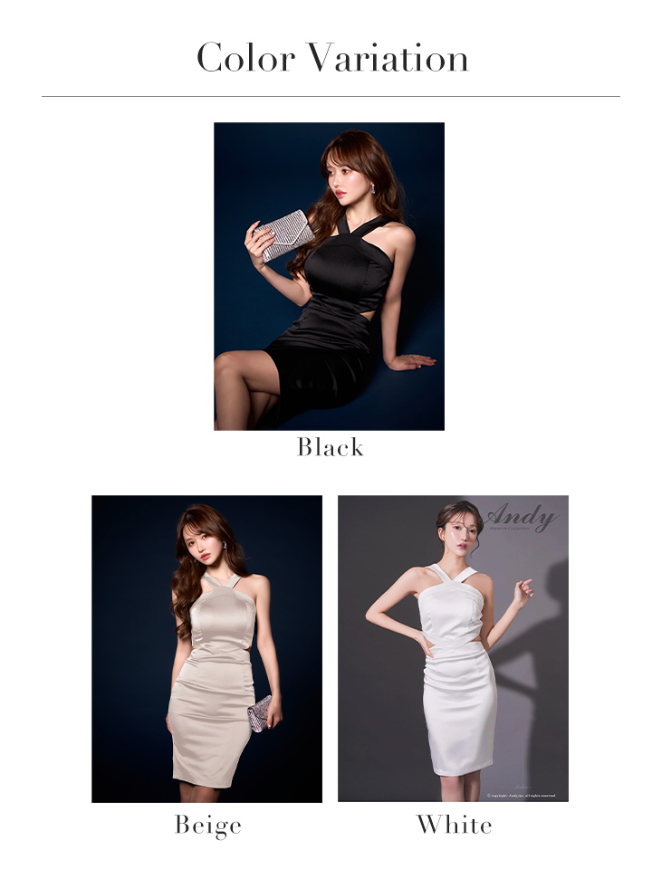 - > 【ANDY/アンディ】サテン/ ホルターネック/ ウエストカット/ タイト/ 膝丈/ ミディアムドレス/ キャバドレス[OF05]