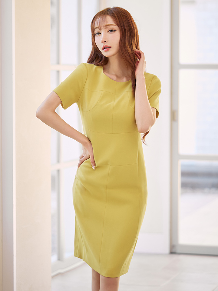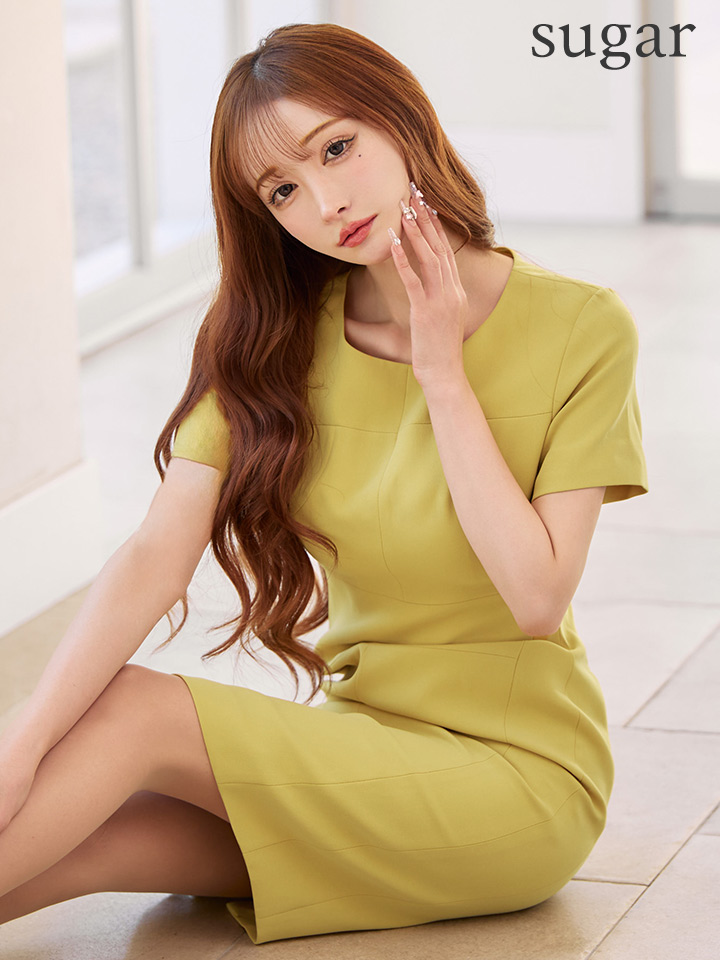 XS-Lサイズあり【GINZA COUTURE/銀座クチュール】 シンプル/ ワンカラー/ 半袖/ 袖あり/ 膝丈/ タイト/ ミディアムドレス/ キャバドレス[OF2] [LKC24146-Y-S2510]