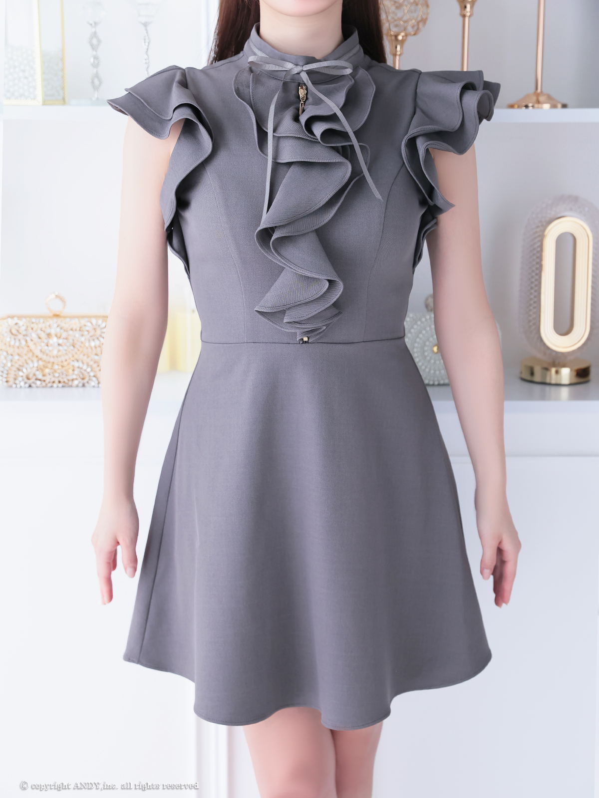 ハイネックxフリルデザインがクラシカルな雰囲気のミニドレス♡