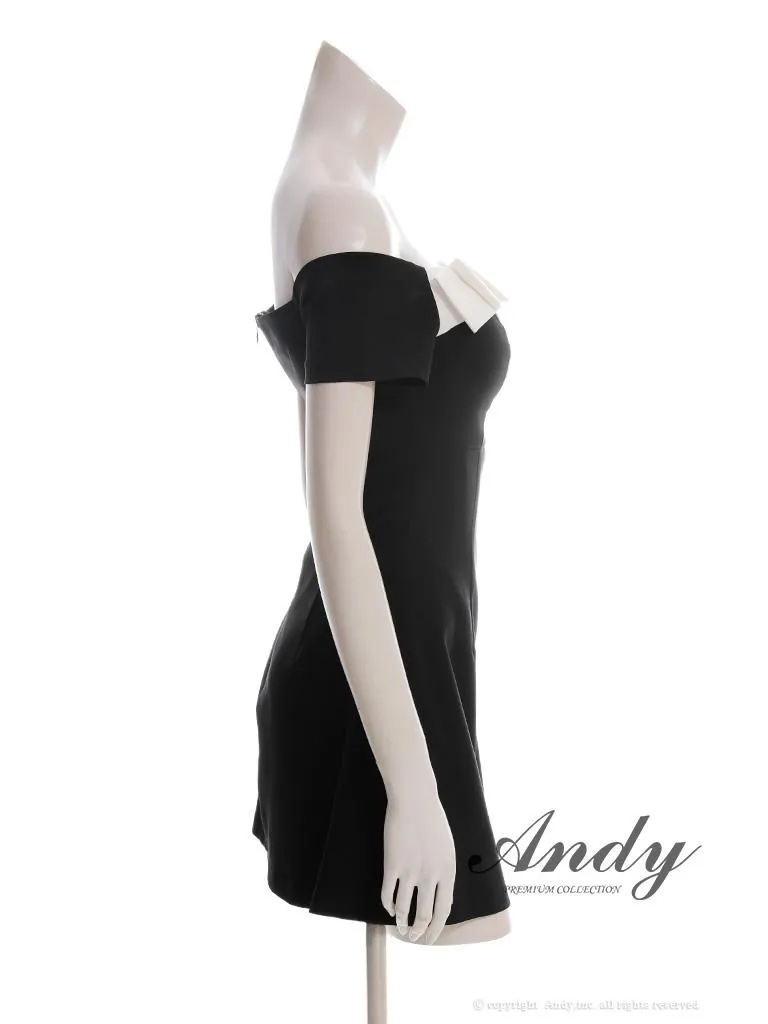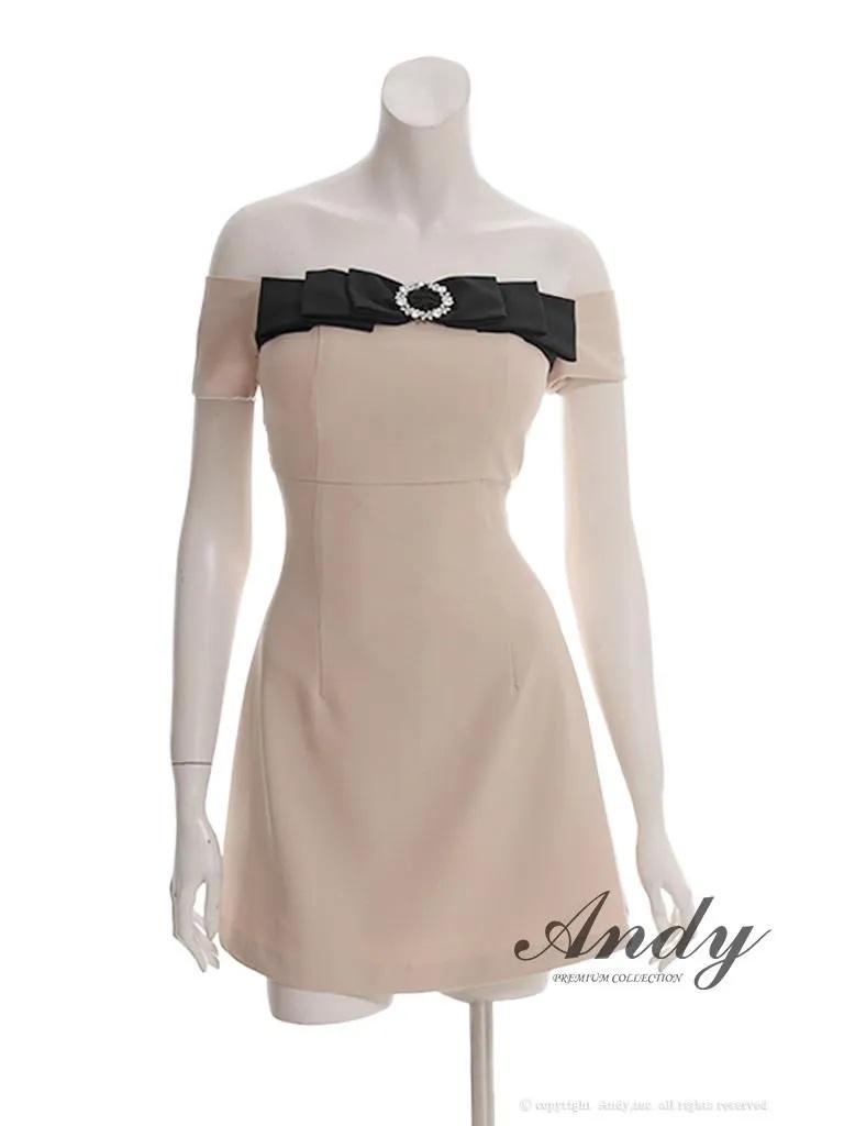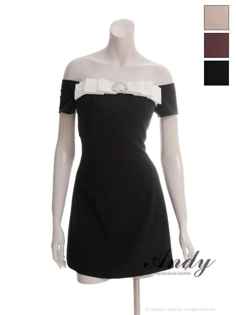 - > XSサイズあり【ANDY/アンディ】オフショル/ リボン/ ブローチ/ Aライン/ フレア/ ワンピース/ ミニドレス/ キャバドレス[OF05]