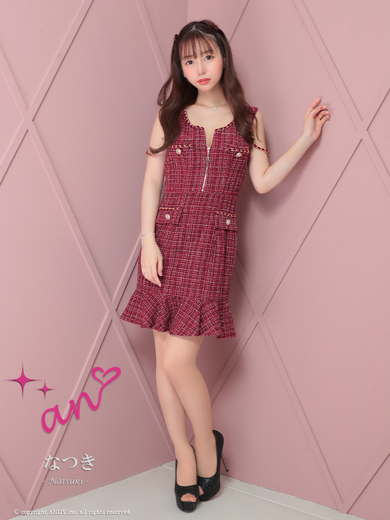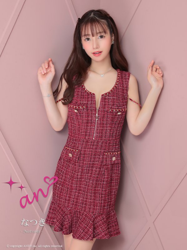 - > XSサイズあり【an /アン】 ツイード/ フロントジップ/ チェーン/ ノースリーブ/ ポケットデザイン/ マーメイド/ ミニドレス/ キャバドレス[OF05]