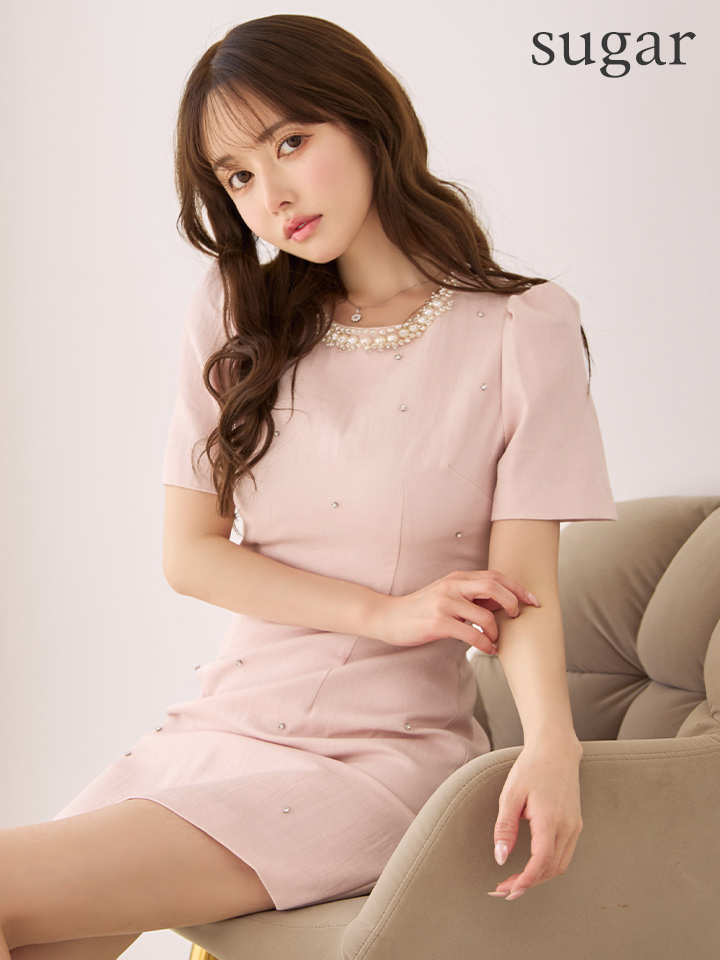 - > XS-Lサイズあり 【GINZA COUTURE/銀座クチュール】パール/ ラインストーン/ 半袖/ 袖あり/ シンプル/ フレア/ Aライン/ ワンピース/ ミニドレス/ キャバドレス[OF2]