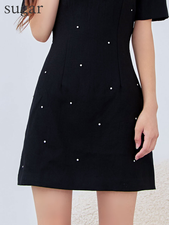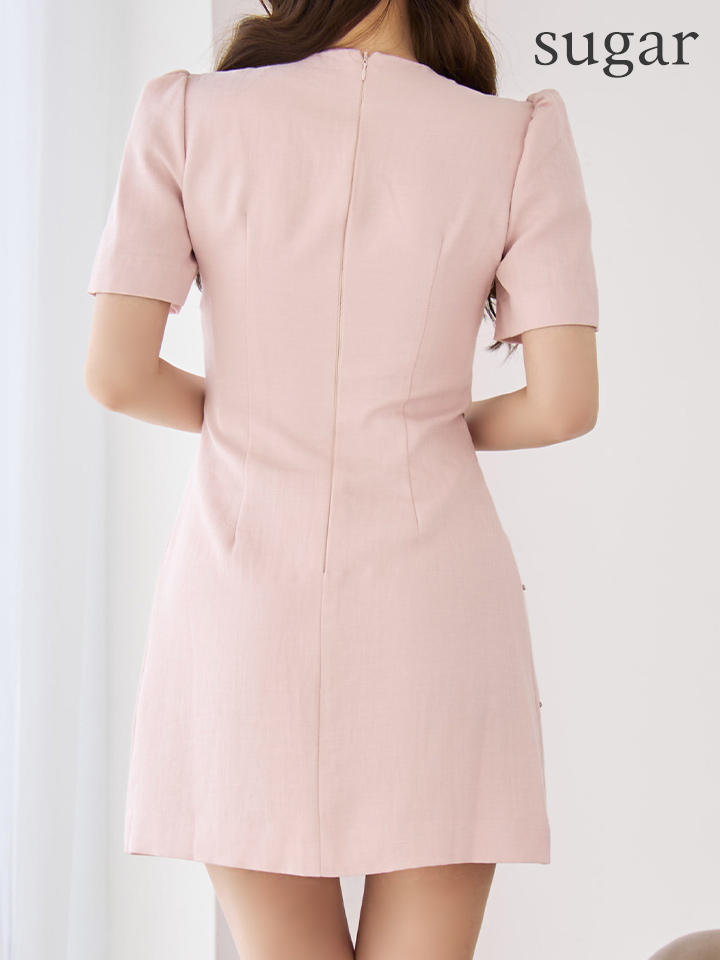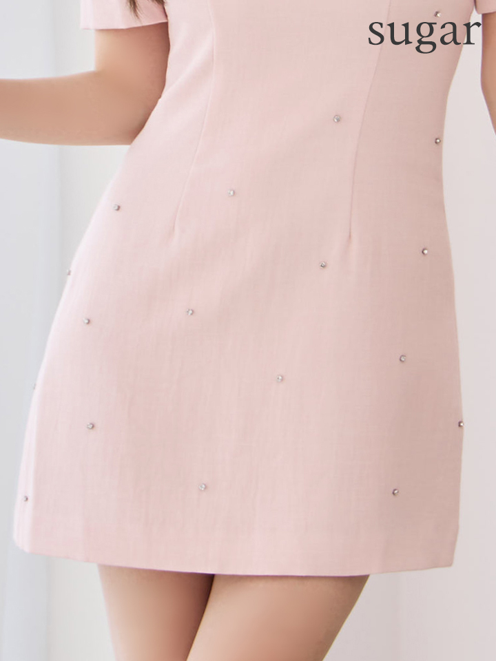 XS-Lサイズあり 【GINZA COUTURE/銀座クチュール】パール/ ラインストーン/ 半袖/ 袖あり/ シンプル/ フレア/ Aライン/ ワンピース/ ミニドレス/ キャバドレス[OF2]