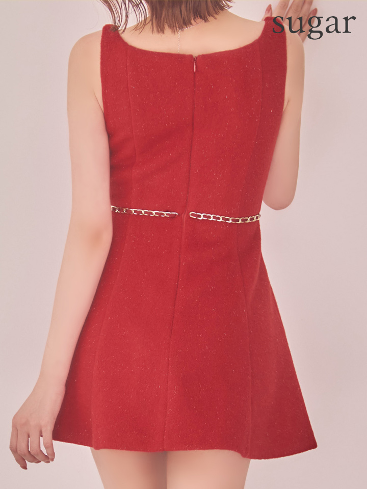 - > XSサイズあり【ROBE de FLEURS/ローブドフルール】ウエストリボン/ ラメ入りメルトン/ フレア/ ミニドレス/ キャバドレス[OF08]