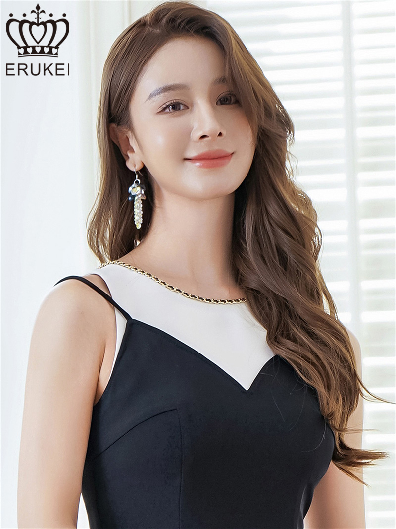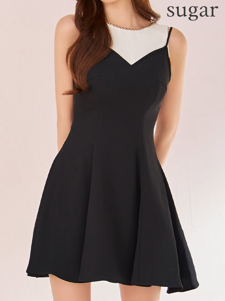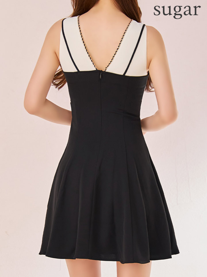 - > XS-Lサイズあり【ERUKEI エルケイ】バイカラー/ チェーンパイピング/ レイヤード風/ フレア/ Aライン/ ワンピース/ ミニドレス/ キャバドレス[OF2]