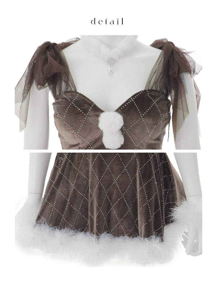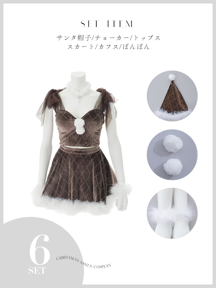 【ノベルティ対象】【即日発送】【サンタ】チュールリボンアーガイル風サンタコスプレ【コスプレ6点セット】【XS-XLサイズ/3カラー】[OF01] [SS-182-YN-dzw-BR-25AS]